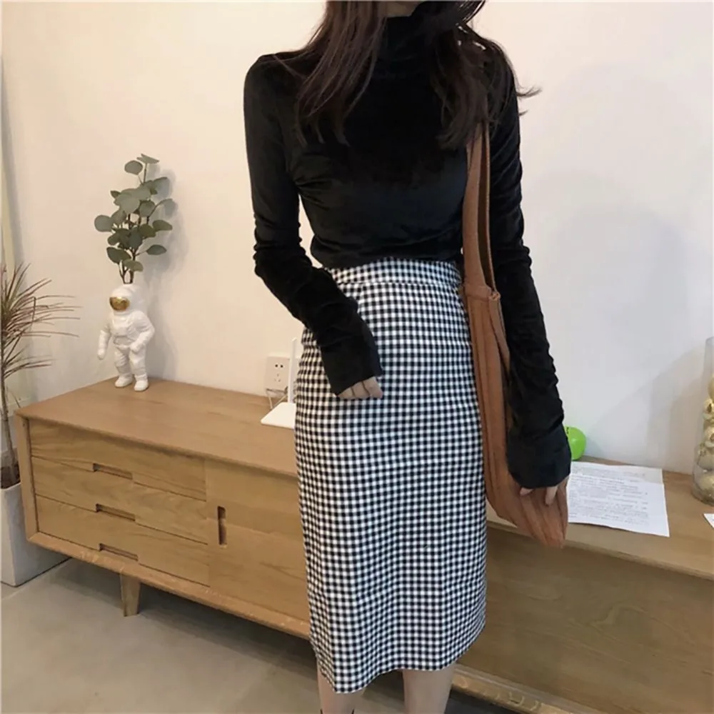 Женская футболка, теплые золотые бархатные пуловеры, топы, топ с высоким воротником, облегающая футболка, зимняя теплая водолазка, футболка с длинным рукавом