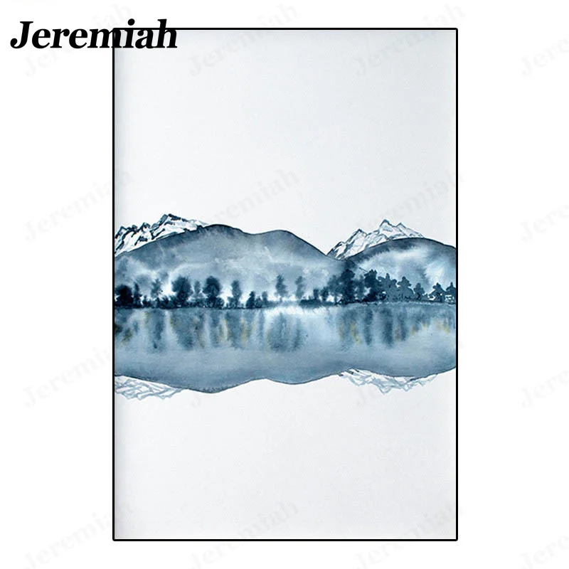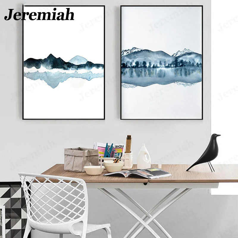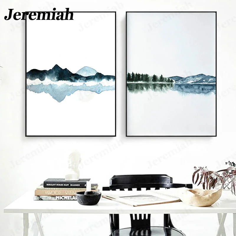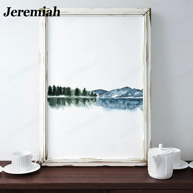 Скандинавский минималистичный акварельный Абстрактный пейзаж, живопись, холст, плакат, темно-синяя вода, поверхность, отражение, картина, настенное искусство