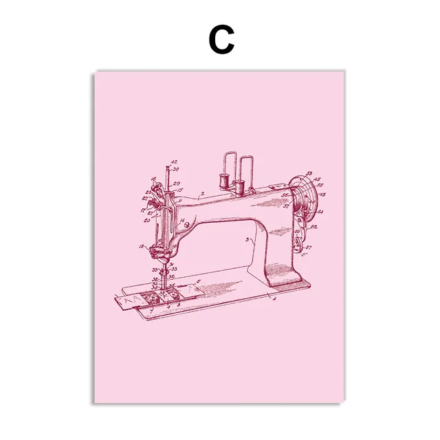Инструмент для изготовления одежды, швейная машина, модель платья, минималистичные розовые постеры и принты для девочек, комната, Модный магазин, Декор, Картина на холсте