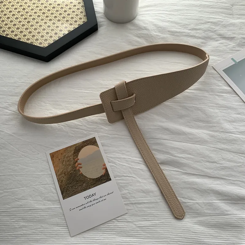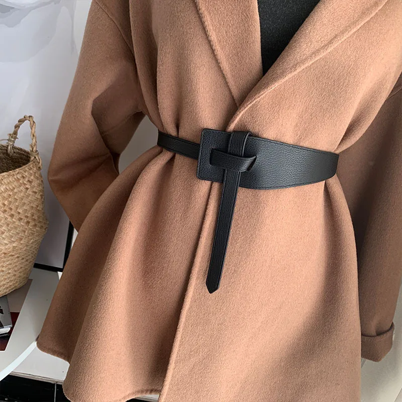 Ремень женский кожаный, широкий, 118 см, с узлом, черный, пояс для юбки