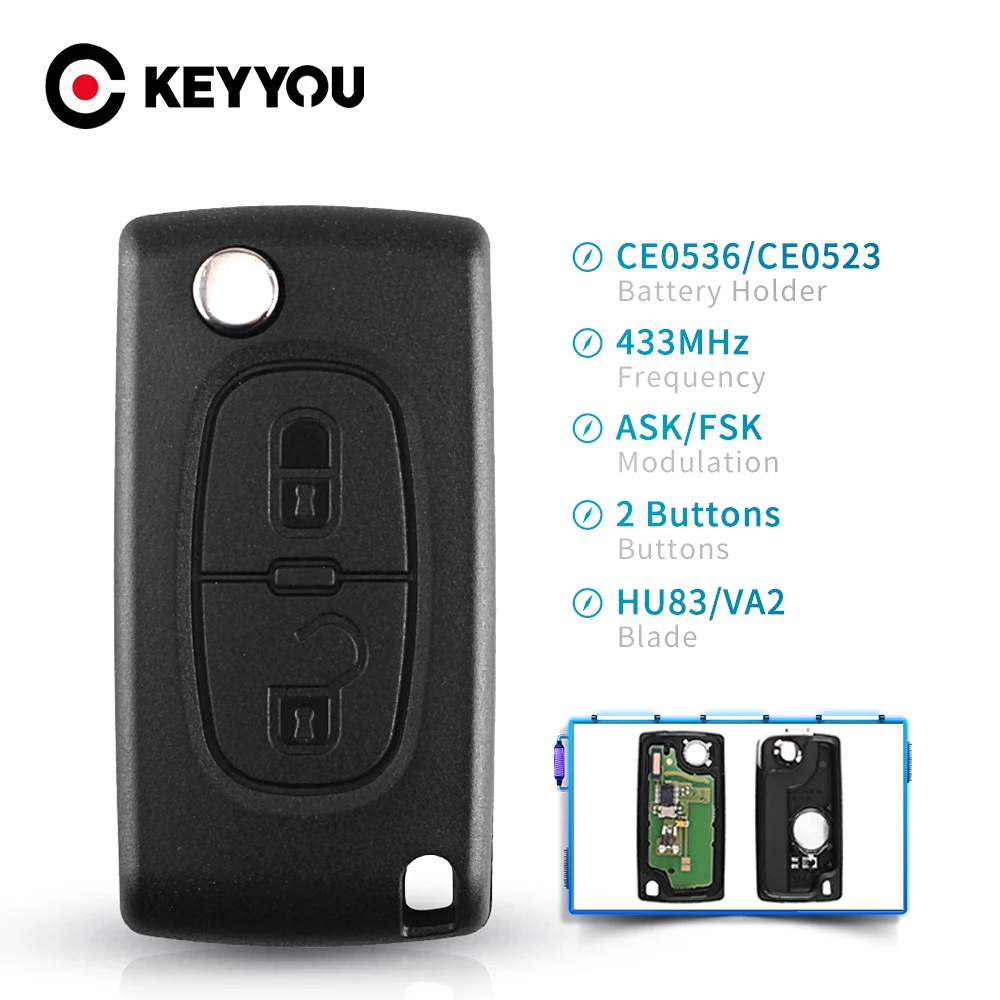 Ключ-флип VA2HU83, 2 кнопки, ASK FSK, для Peugeot 307, 3008, 308, 408, 433 МГц, ID46, 7941, CE0536, CE0523, дистанционный ключ-брелок от машины