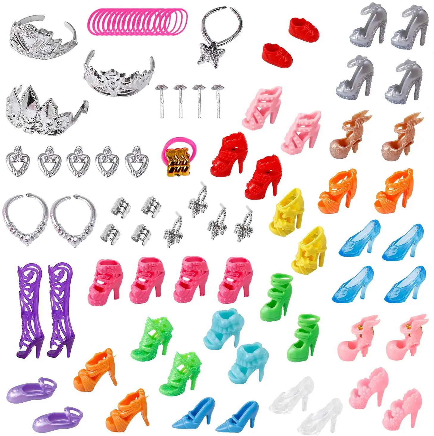 50 пар обуви для Барби высокие каблуки сапоги хрустальные кроссовки...