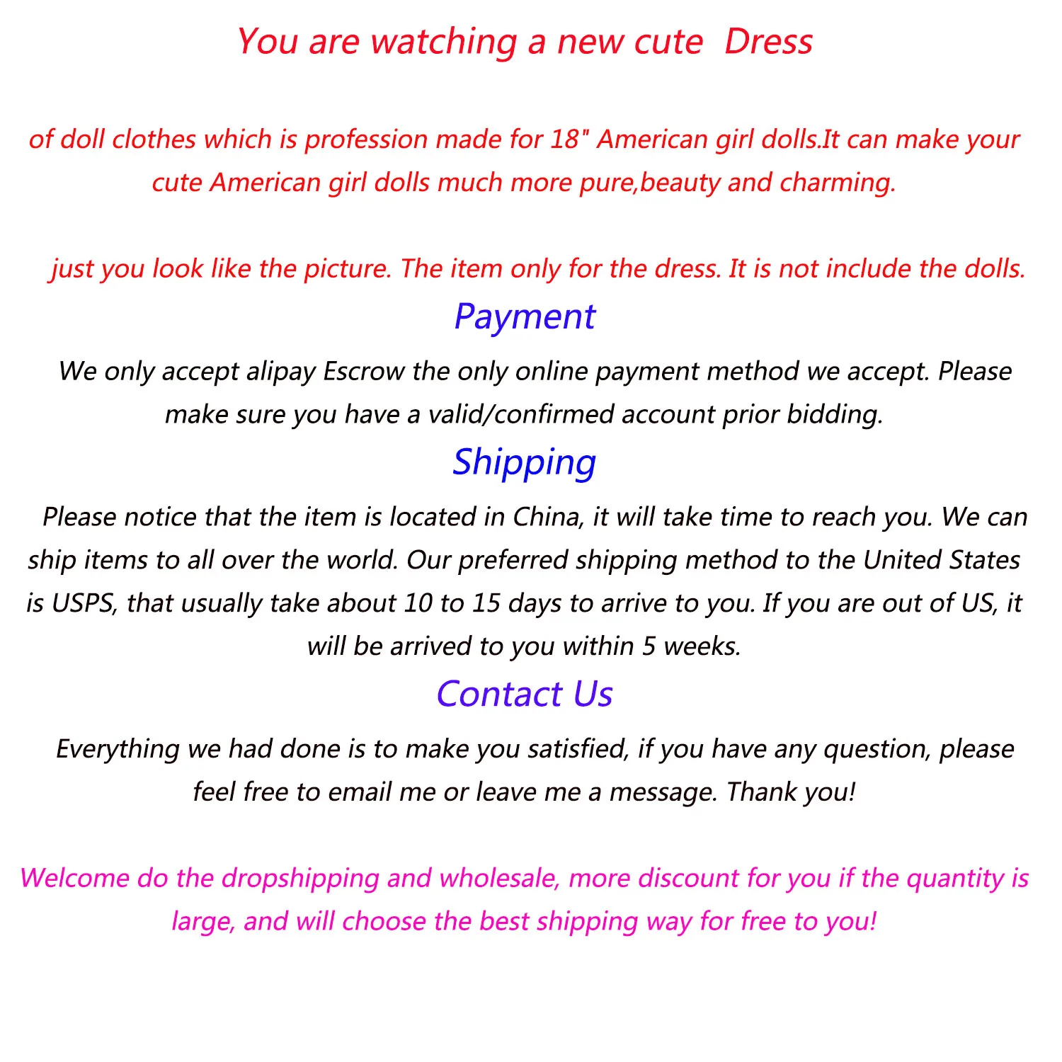 Качество отличное, товары совершенно новые, фасоны разнообразные, цена доступная, клиентам и друзьям, торопитесь и разместите свой заказ! Хватайте-Зарабатывайте!