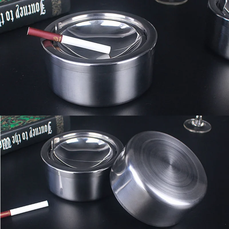 Круглый Нержавеющая сталь с крышкой пепельница с защитой от ветра отель Интернет кафе в помещении и на открытом воздухе для пепельница