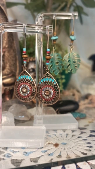 Большие ретро-серьги в богемном стиле, с крючками, листьями, цветами, этнические металлические серьги