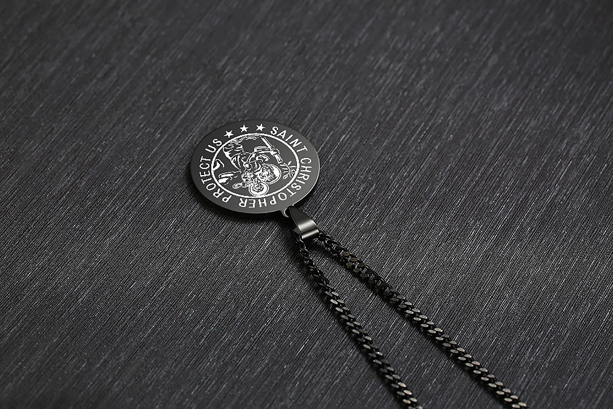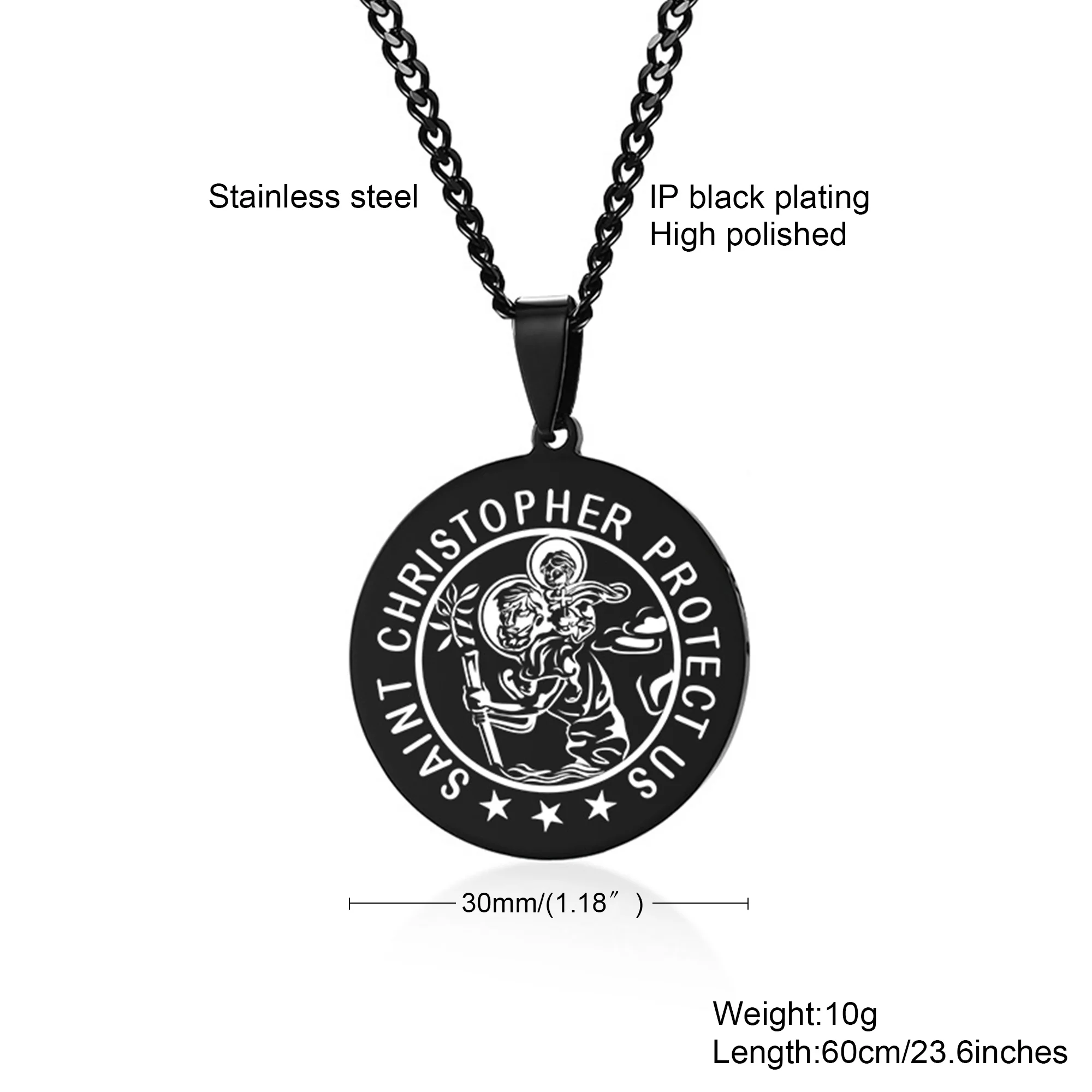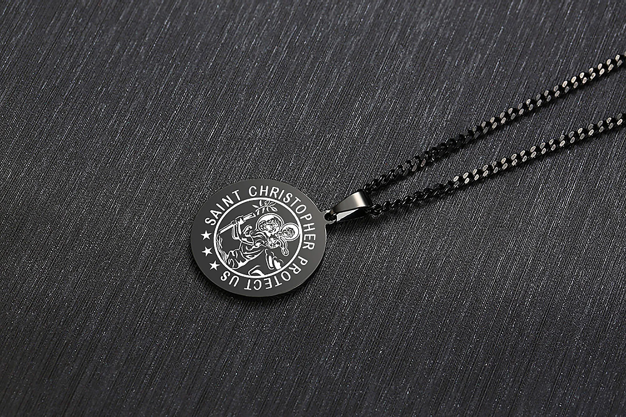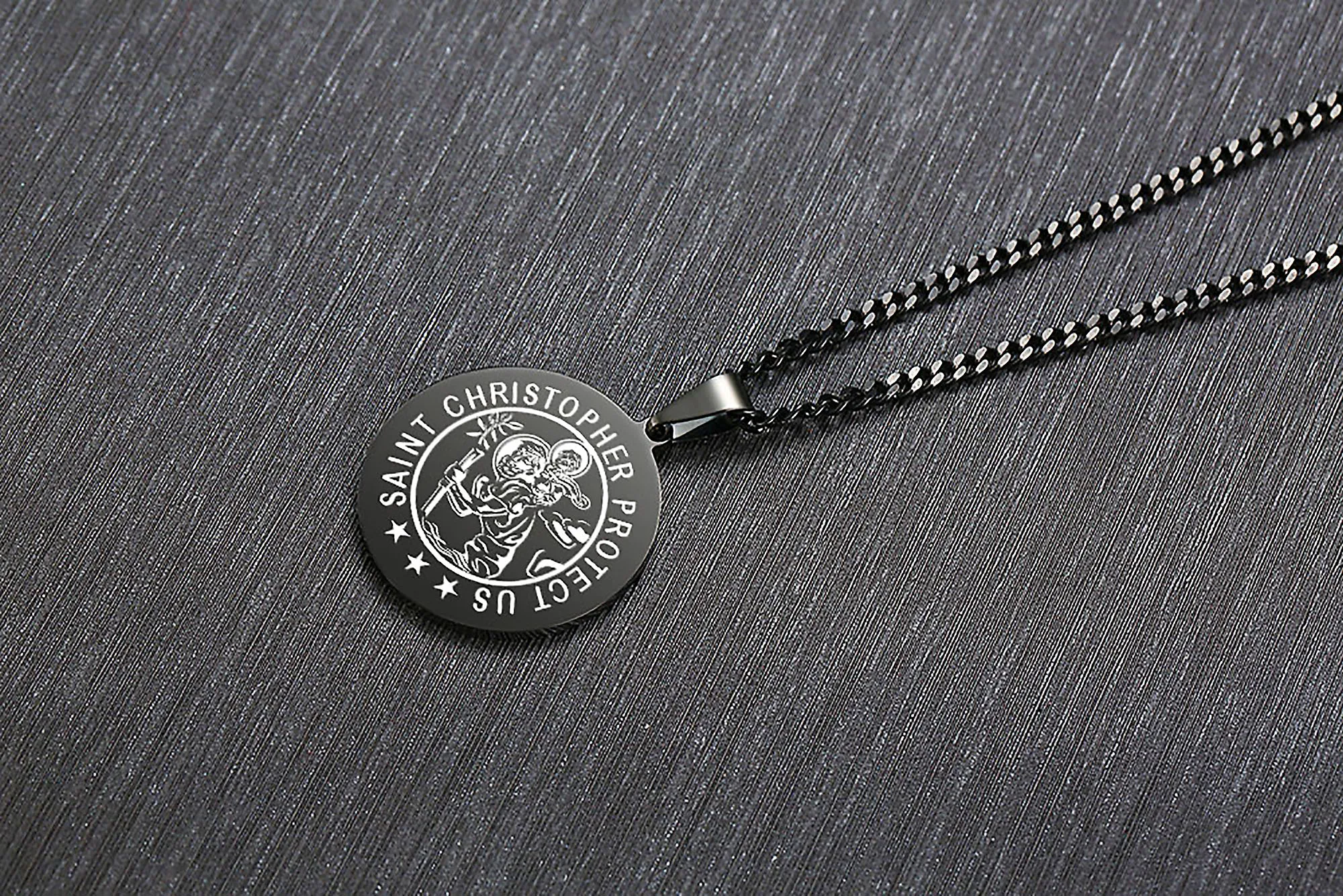 St Christopher религиозный медальон диск кулон ожерелье из нержавеющей стали мужские ювелирные изделия черный