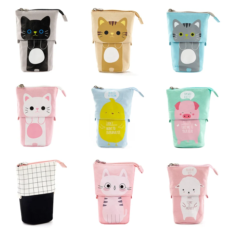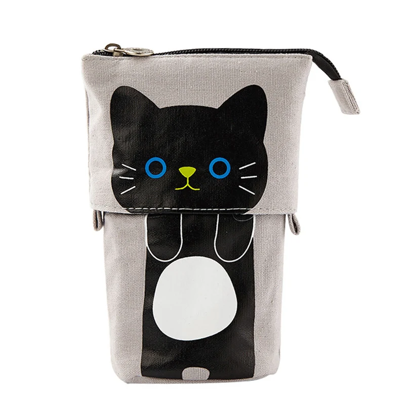 Холщовый Телескопический пенал с мультяшным котом, чехол для ручек ...