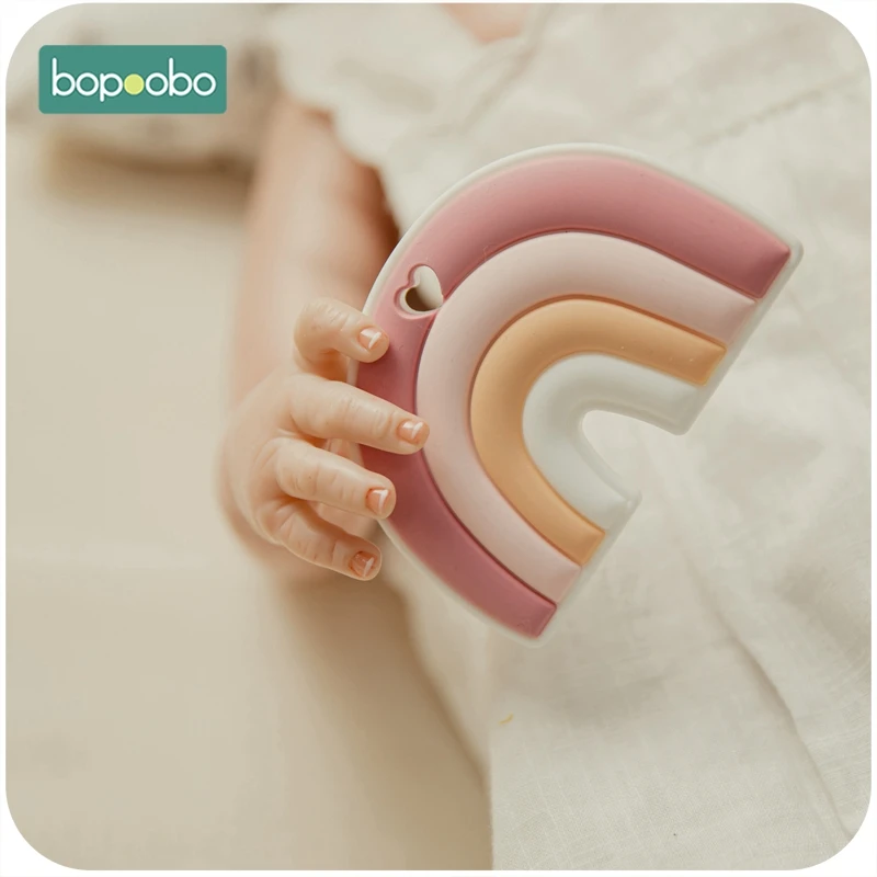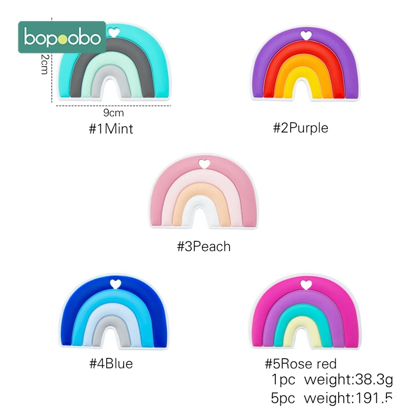 Bopoobo 5 шт. силиконовые радужные Прорезыватели для зубов для малышей, пищевая пустышка без BPA, аксессуары для цепей для грызунов