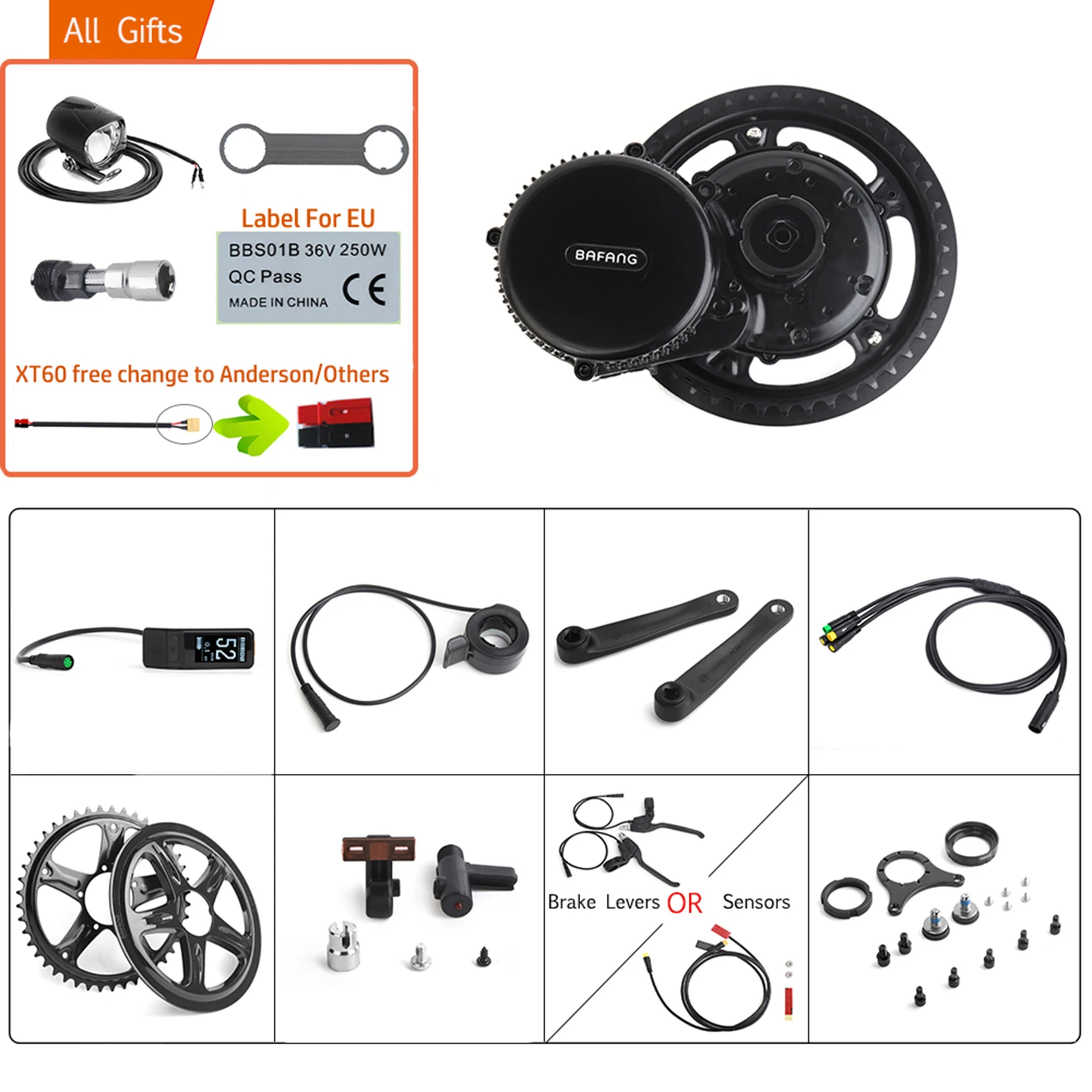 Подарки: Гаечный ключ + кабель XT60 + инструменты для снятия кривошипа + наклейки 250 Вт (только для ЕС)