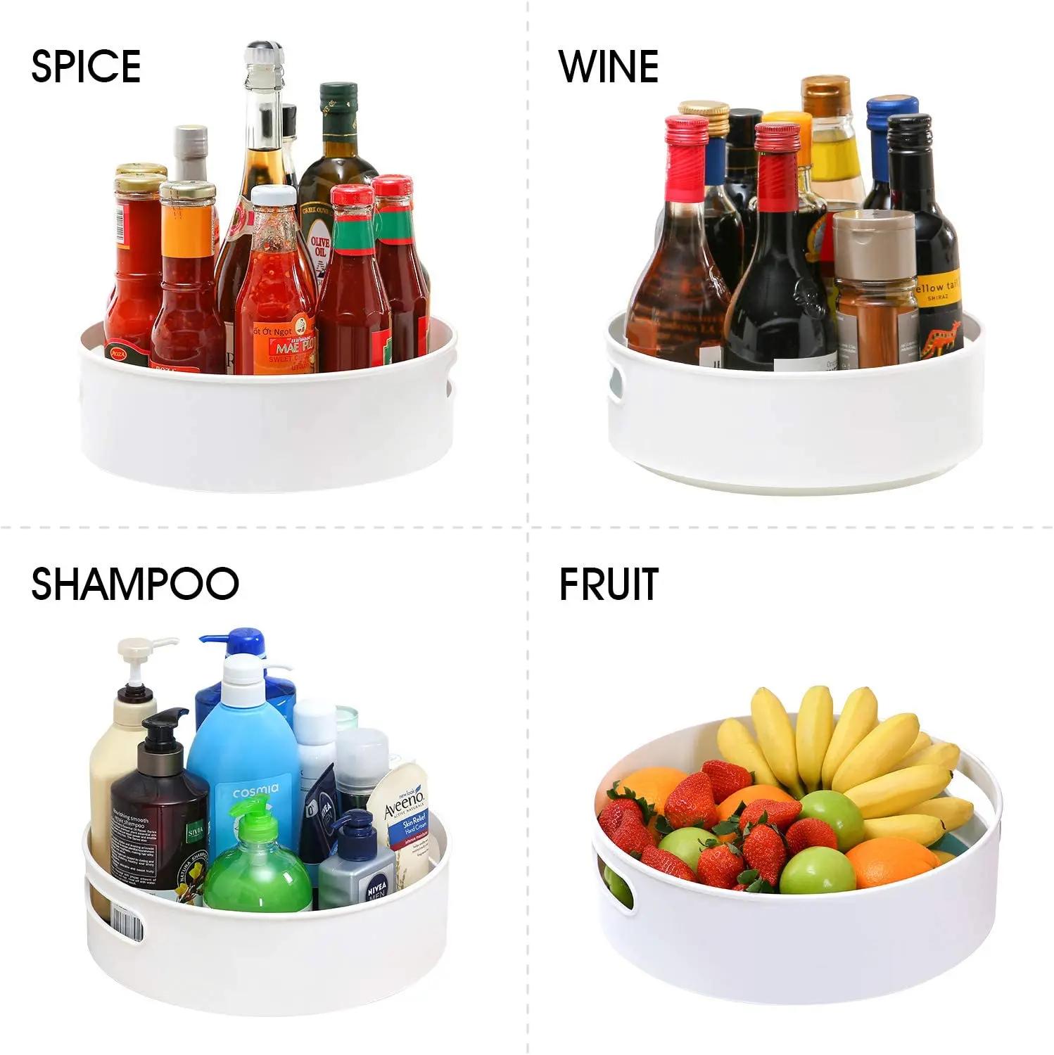 Пластиковый вращающийся контейнер для хранения-нескользящий вращающийся лоток-органайзер 9 дюймов и 12 дюймов для кухни, кладовой, шкафа, ванной комнаты