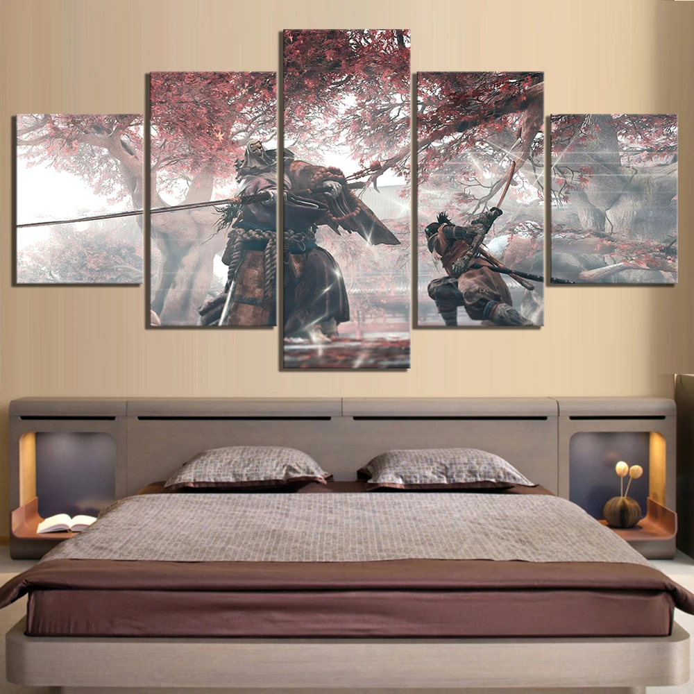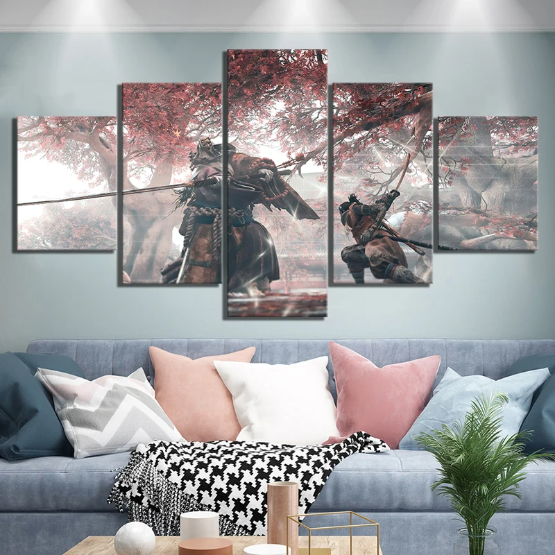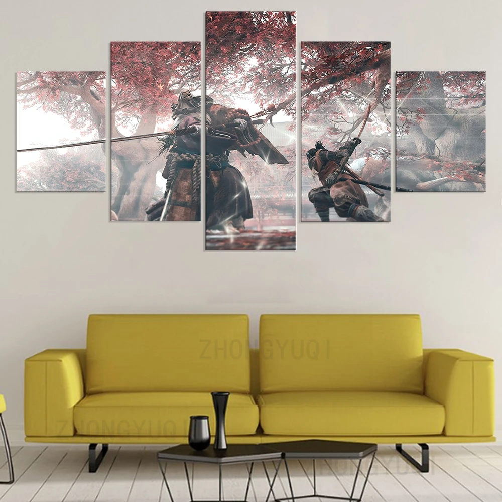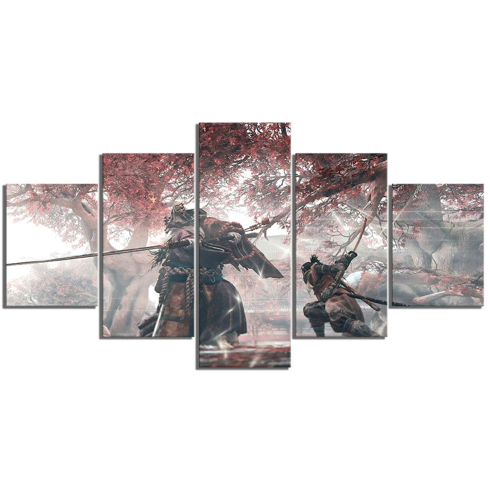5 панелей, фэнтезийное искусство, картина с изображением волка ниндзя, секиро, тени умирают дважды, игровая сцена, мировая Картина на холсте, настенное искусство, плакат для домашнего декора