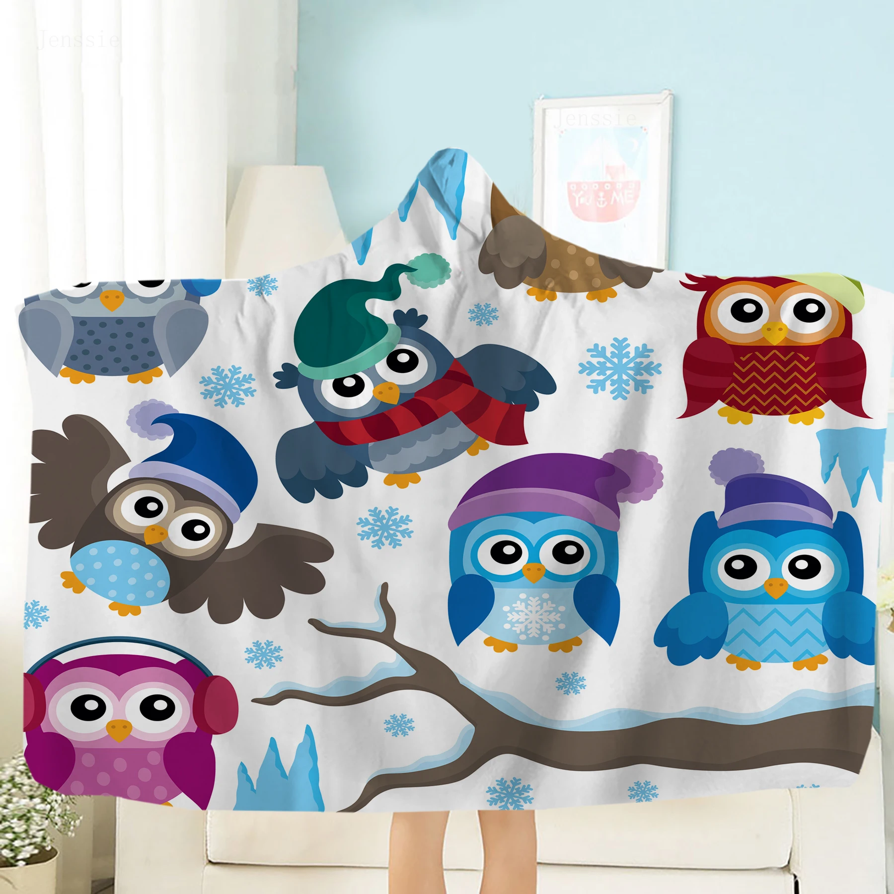 Плюшевое одеяло с капюшоном в виде совы на заказ, Флисовое одеяло с рисунком животных из мультфильма, шерпа, покрывало для дивана, кровати, 3D принт, покрывало для домашней кровати