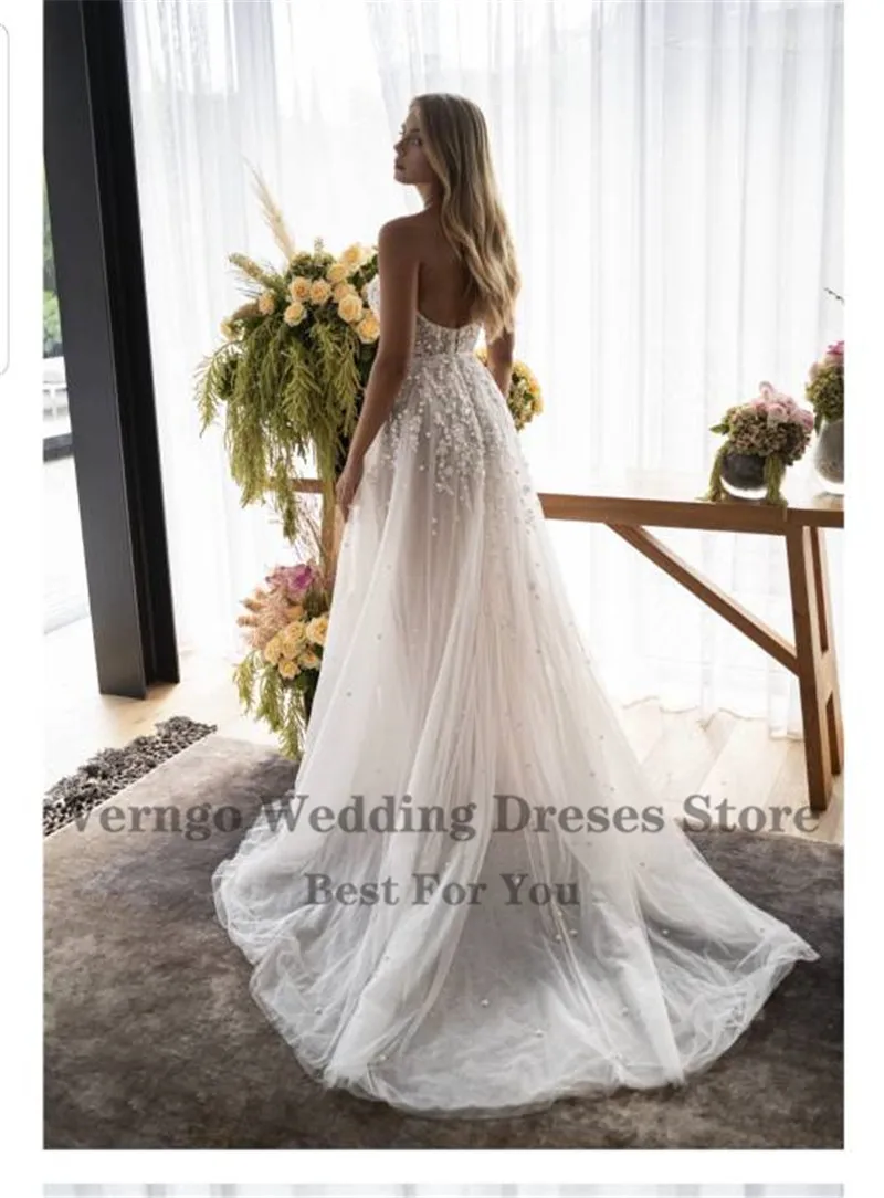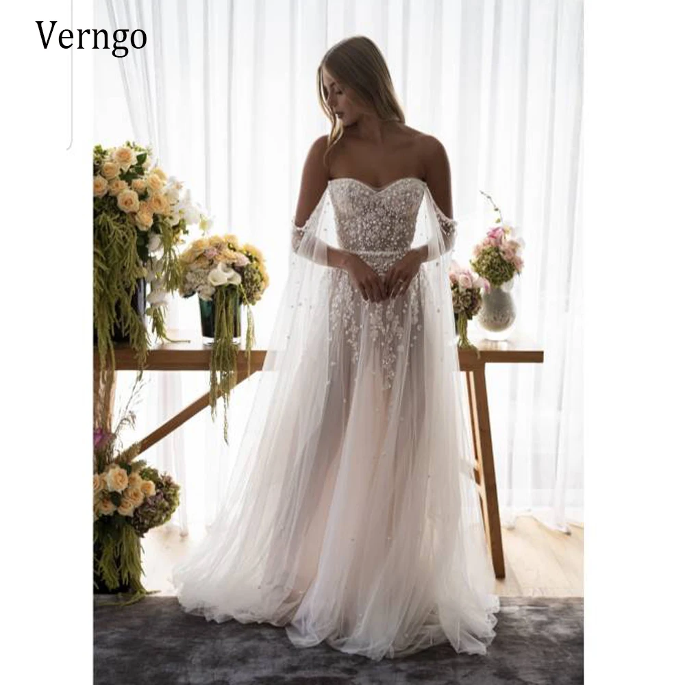 Современное женское свадебное платье Verngo с длинным рукавом и вырезом сердечком из тюля Свадебные платья со шлейфом платья