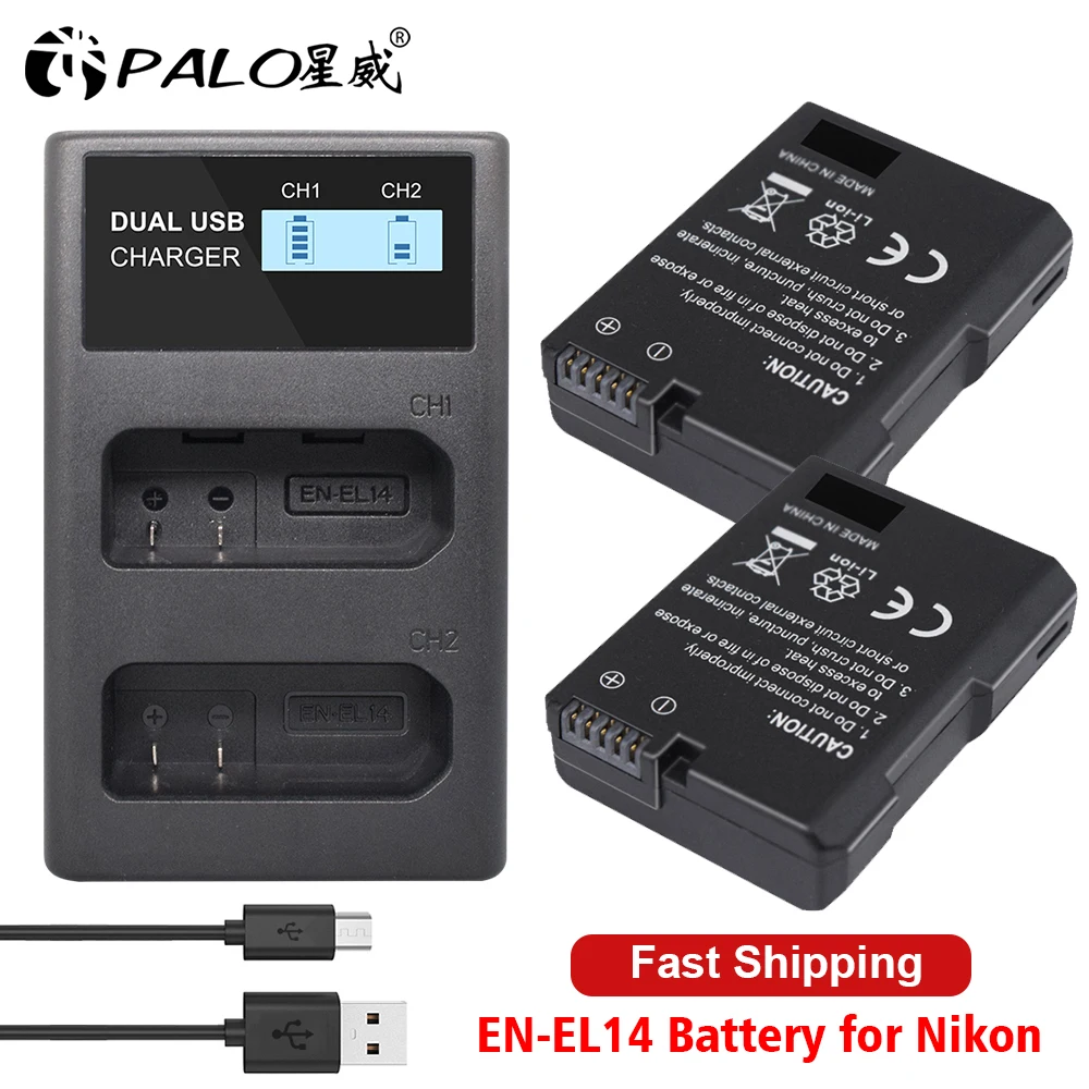 Аккумулятор PALO EN-EL14 ENEL14 EL14 + зарядное устройство для камеры, для Nikon D3100 D3200 D5100 D5200 DF P7000 P7100 P7200 P7700 P7800