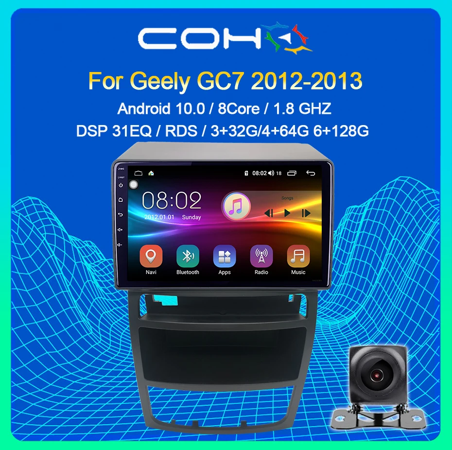 Автомобильный мультимедийный плеер COHO для Geely GC7 2012-2013, радио, Gps-навигация, Android 10,0, Восьмиядерный процессор, 6 + 128G