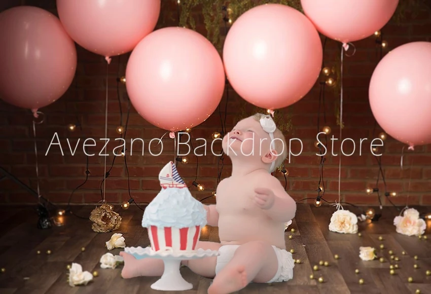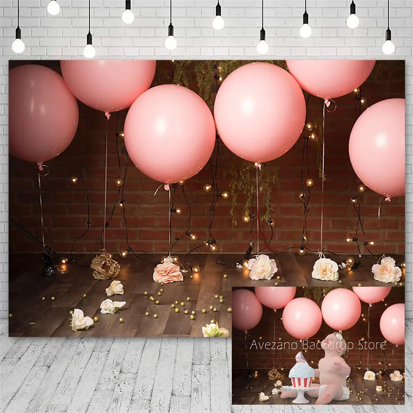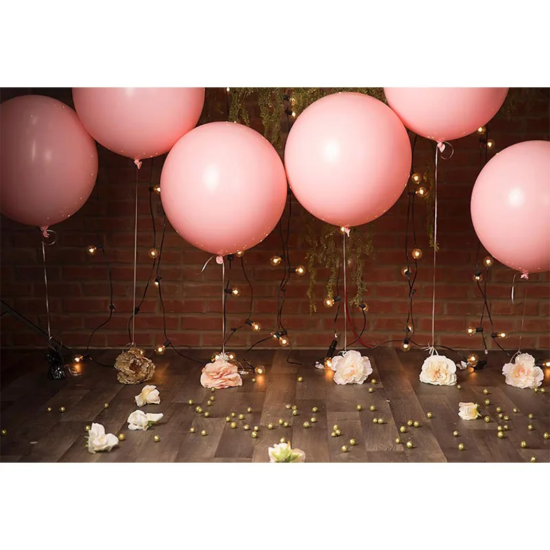Фоны для фотосъемки на день рождения с изображением торта, детских цветов, розовых воздушных шаров, деревянной доски, декор для фотостудии