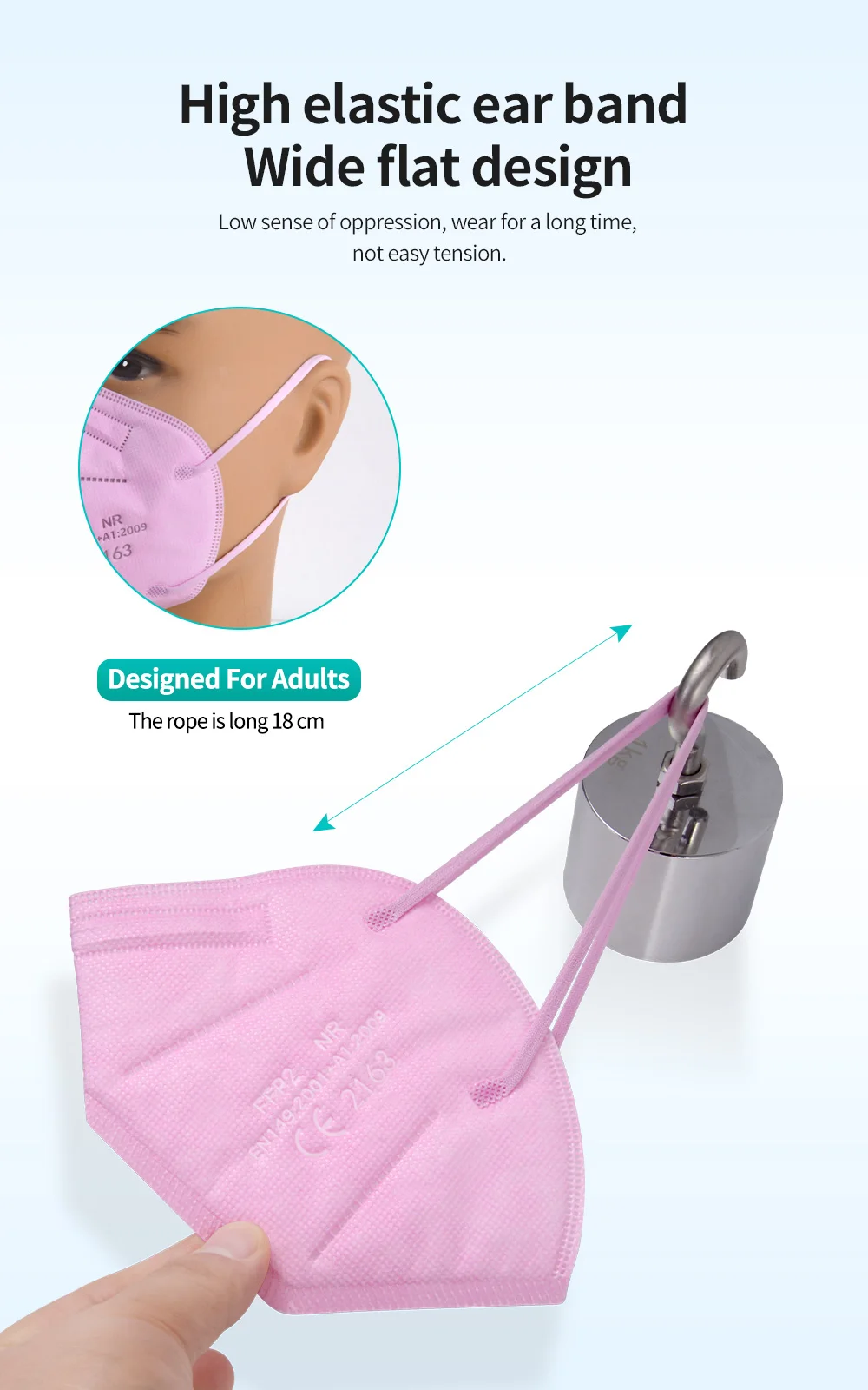 Примечание:Для взрослых "FFP2 NR EN 149:2001 + A1:2009 CE 2163" логотип напечатан на масках