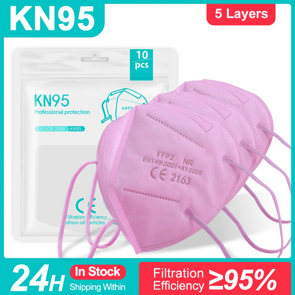 Маска для лица ffp2 KN95, 10 шт., многоразовая, 95%, 5 слоев