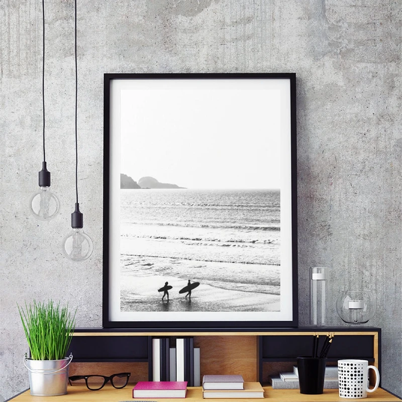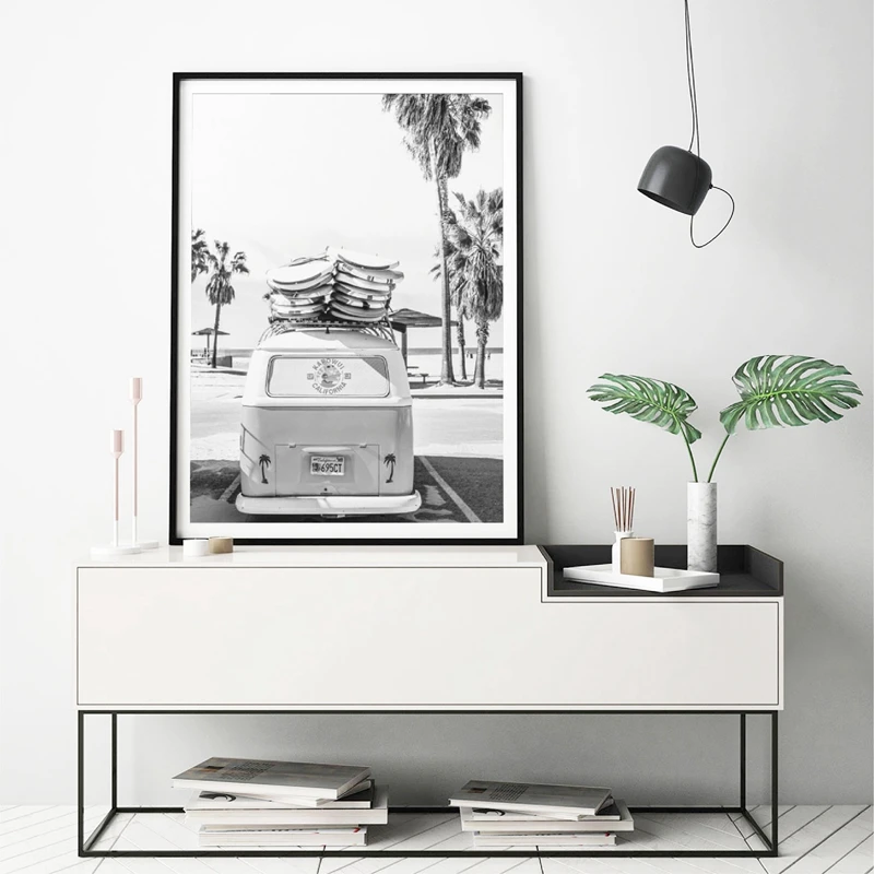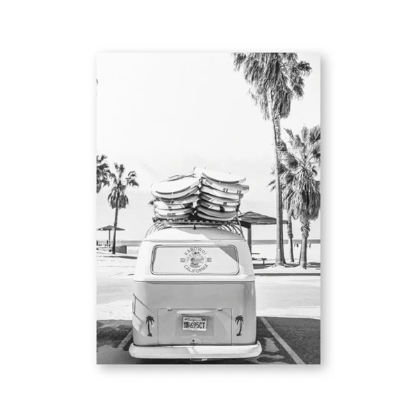 Плакаты пляжные с тропическим пейзажем, Настенная картина с принтом пальмы, пляжа, серфинга, черно-белые картины, домашний декор для стен