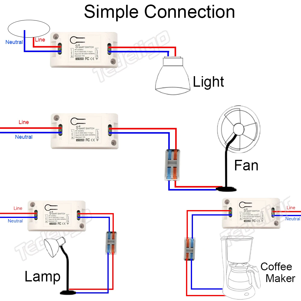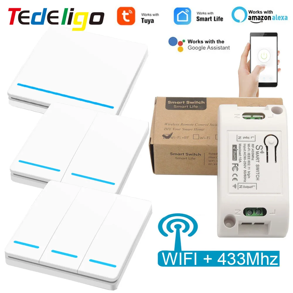 Tuya Smart Life Wi-Fi RF 220 релейный ресивер и 433 МГц кнопочный настенный выключатель Панель совместим с Google Home, Alexa для освещения
