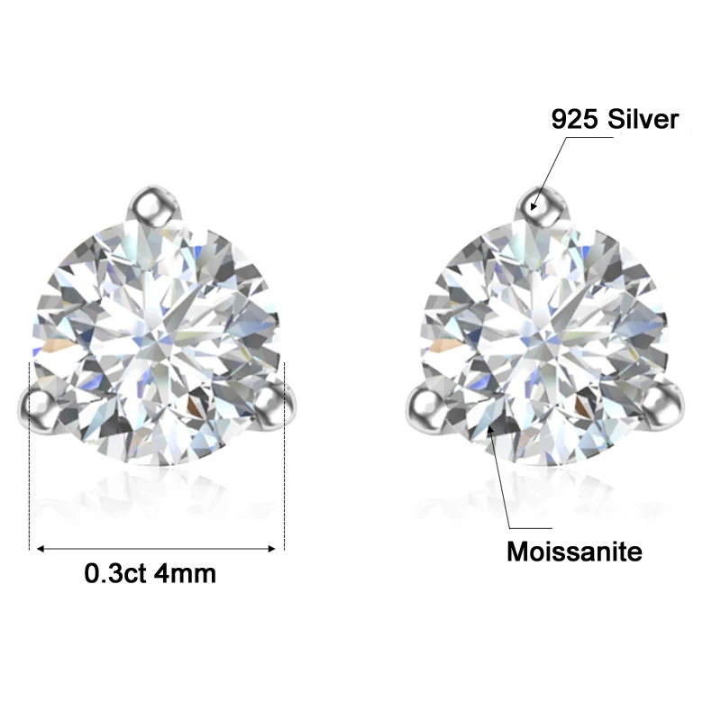 Реальные 100% 0.3ct 4 мм Серьги с муассанитом серьги-гвоздики для Д...
