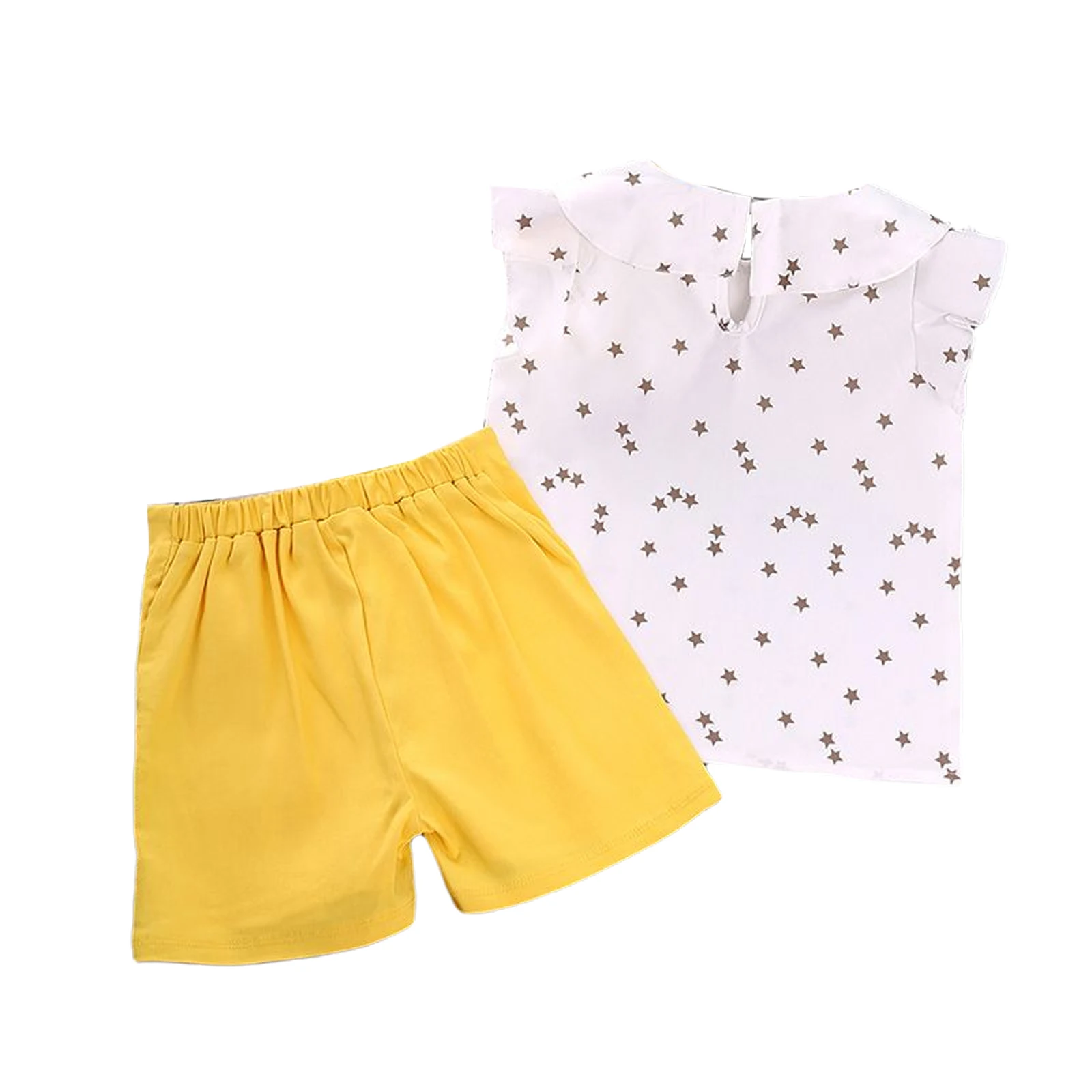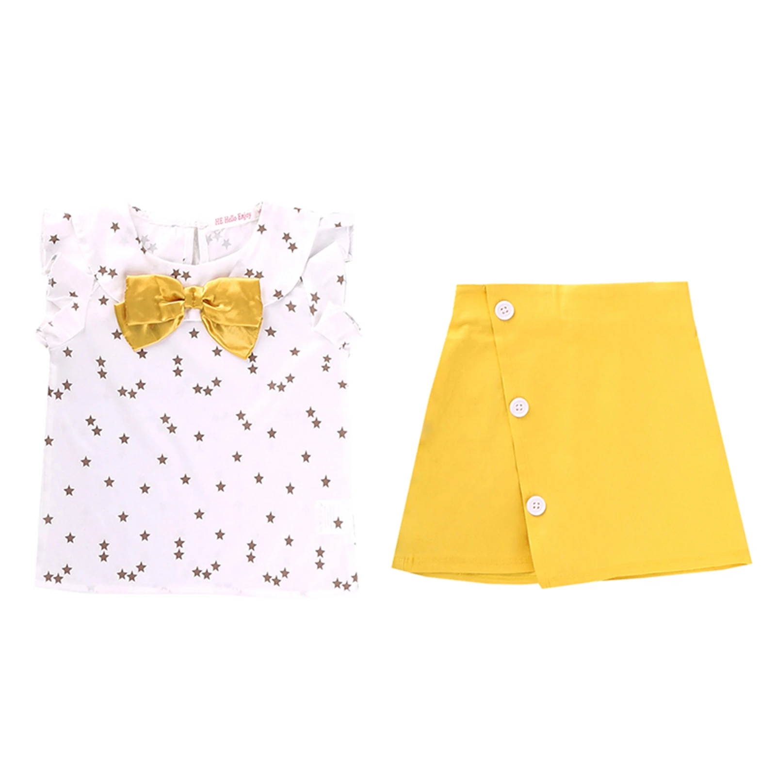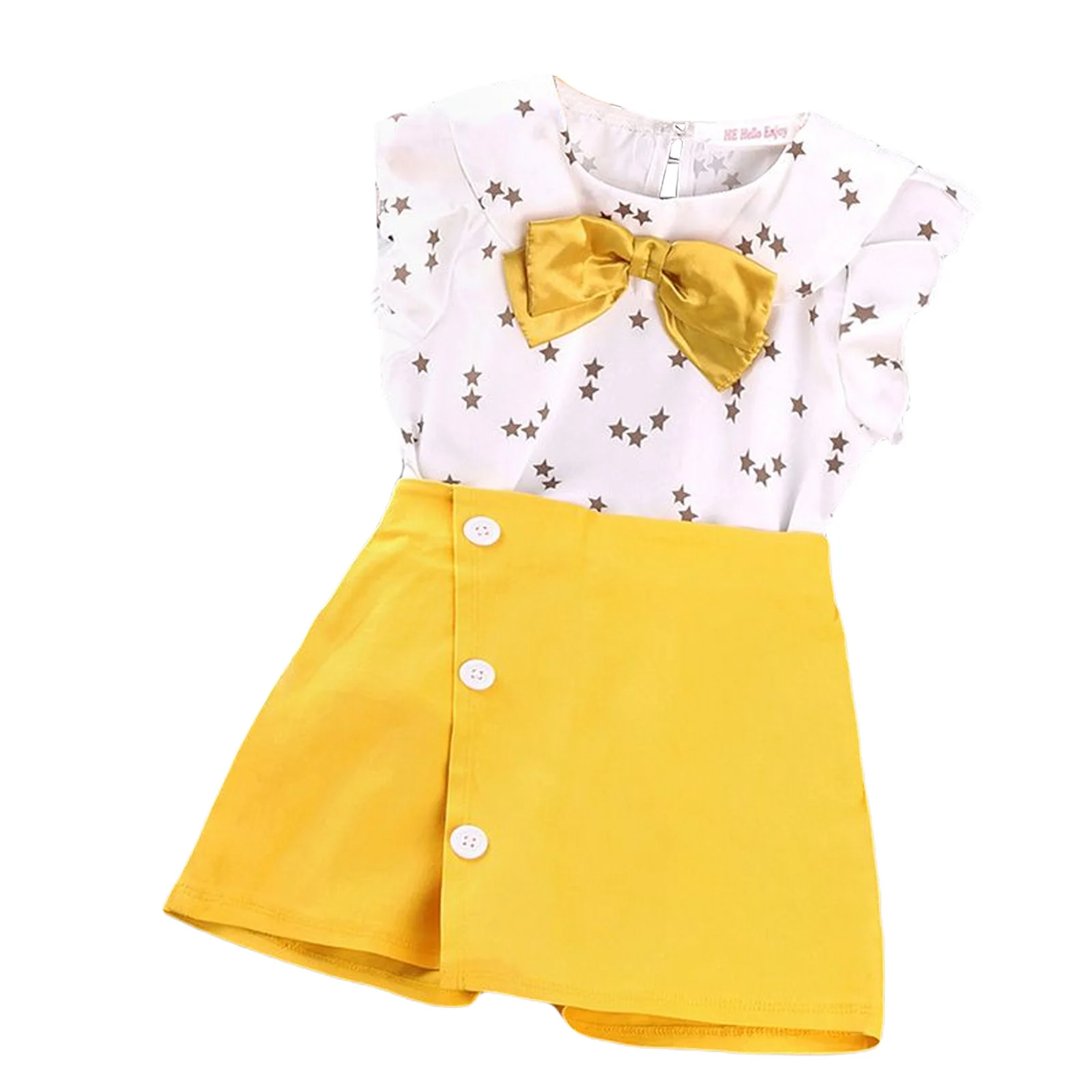 Citgeett летний костюм для малышей; Детская одежда для маленьких девочек комплект одежды из 2 предметов, костюм без рукавов, принт со звездой, топы со свободным воротником с желтый трапециевидная короткая юбка От 2 до 6 лет