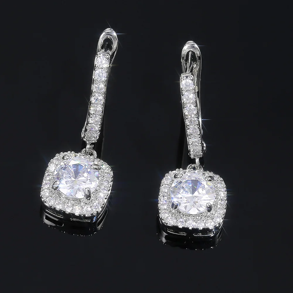 Женские серьги-подвески из серебра 925 пробы, с квадратными вставками