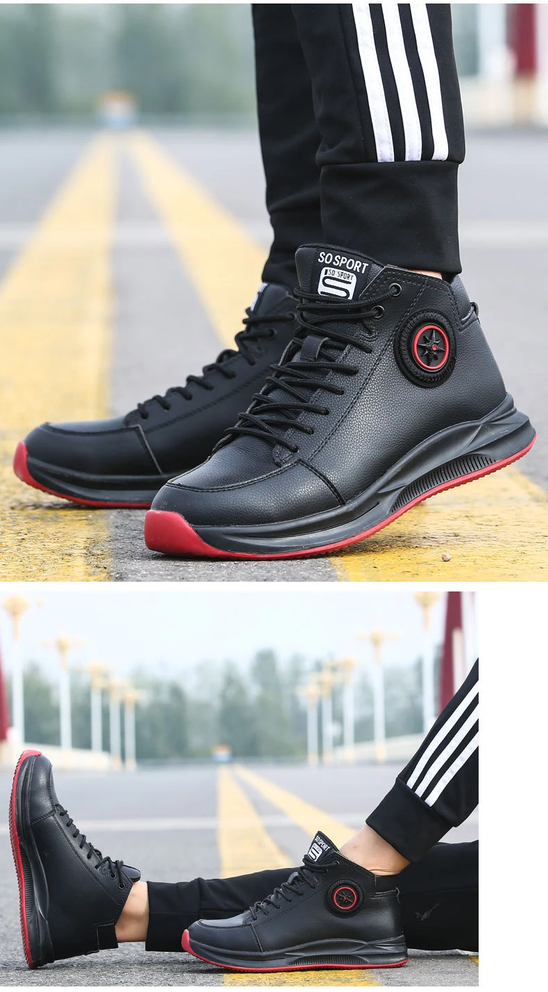 Мужские высокие водонепроницаемые кроссовки из ПУ кожи, со стальным носком