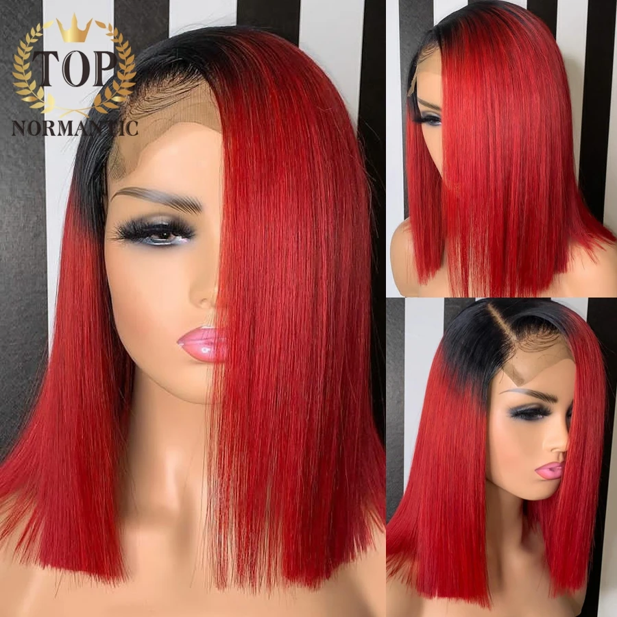 Парики из натуральных индийских волос, с сетчатой основой 4x4, с эффектом деграде, прямые, красного цвета, с предварительно выщипанной линией волос