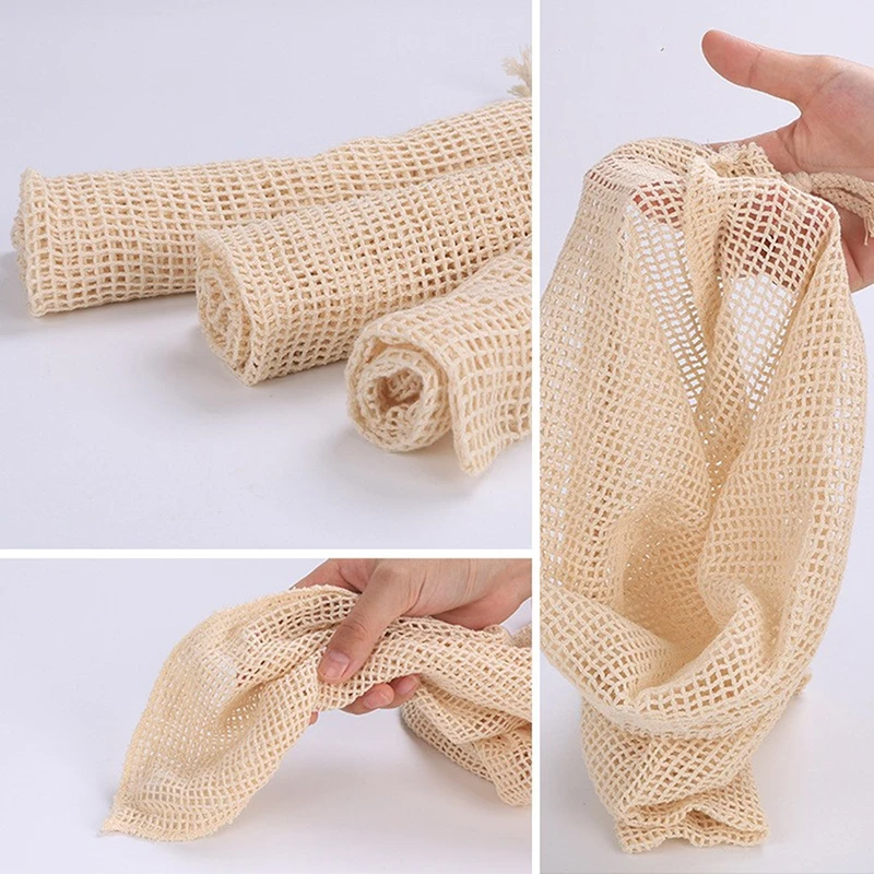 1. Наша сетка из натурального хлопка без полиэстера, без нейлона, без отбеливания и биоразлагаемые. Многоразовые Пакеты от других брендов, изготовленные из синтетических пластиковых материалов, могут занять сотни лет до биоразложения.