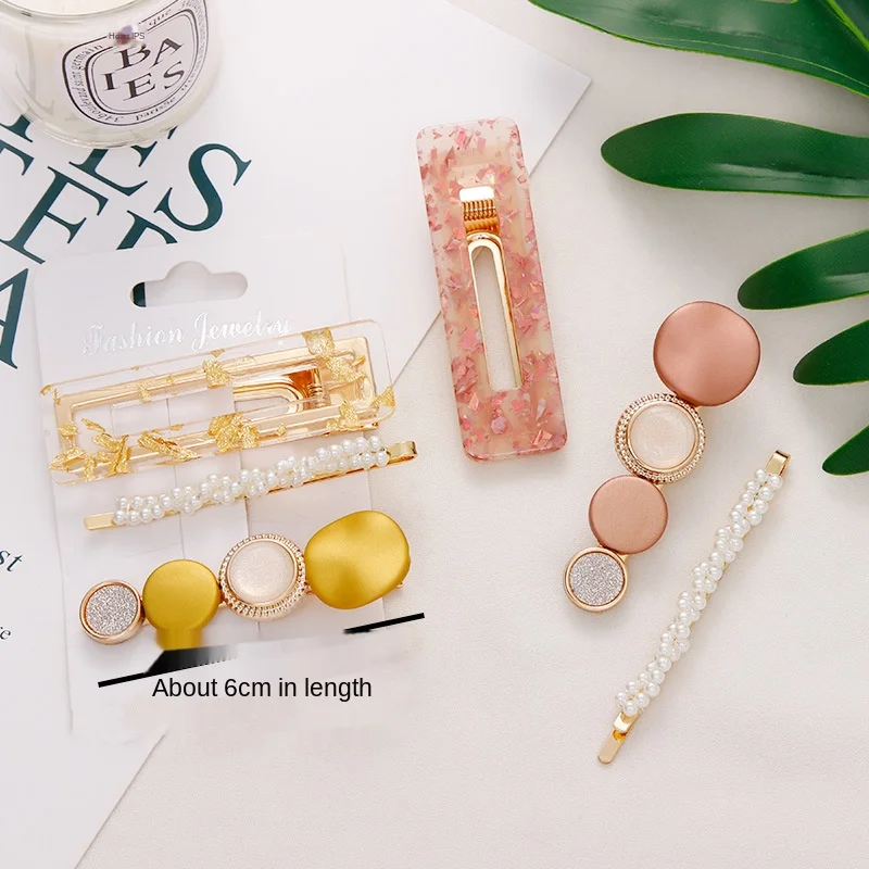 Элегантная боковая заколка в Корейском стиле, набор заколок для волос из жемчуга и ацетата, милые женские аксессуары для волос с жемчугом