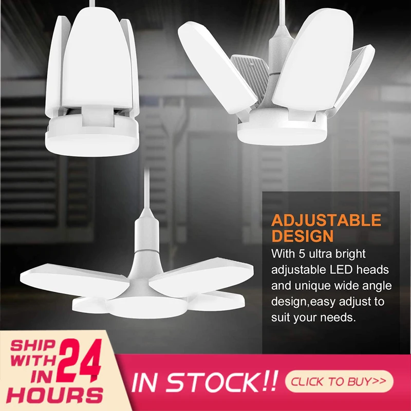-Регулируемый панели: светодиодный гараж светильник разработан с четырьмя регулируемый светодиодный, который может быть сложен до 90 градусов, а также имеется