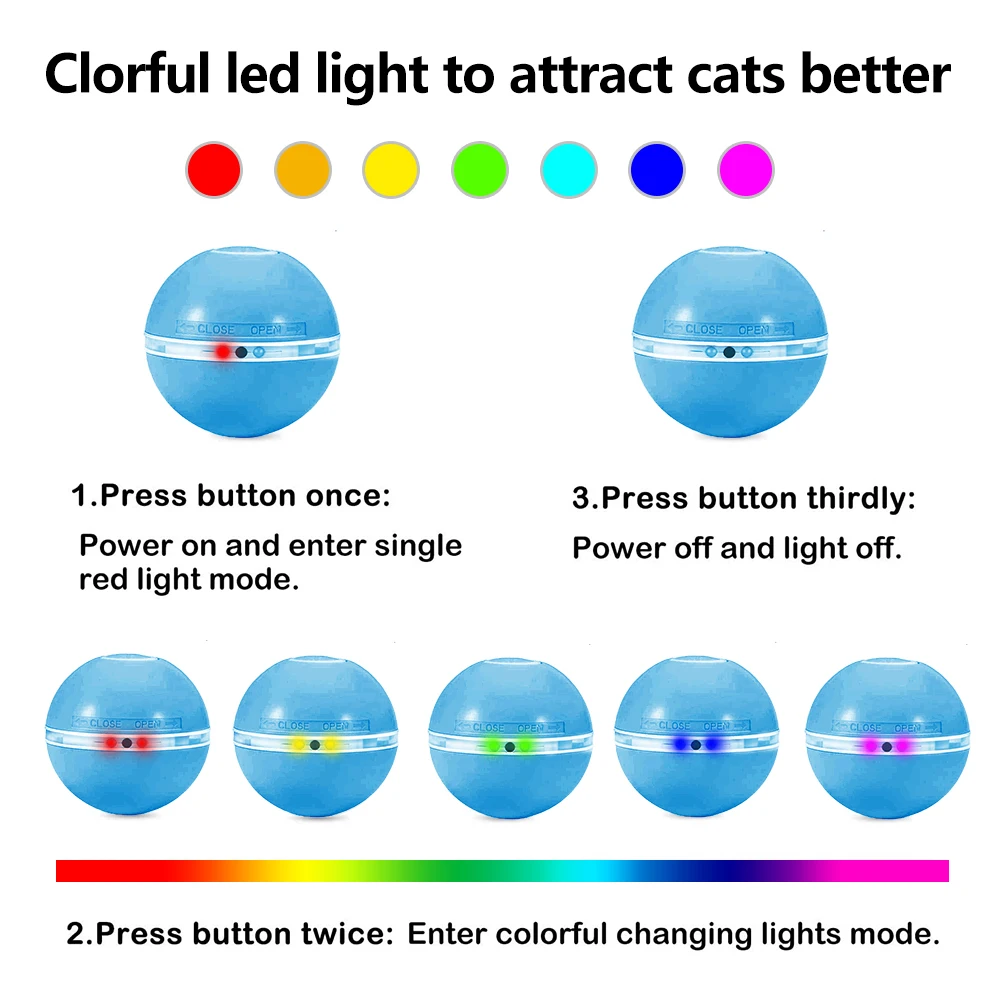 Оптовая продажа, умные интерактивные игрушки для кошек, цветной светодиодный самовращающийся Шар С Кошачьей Мятой, колокольчиком и перьями, USB-зарядка, игрушка для кошек