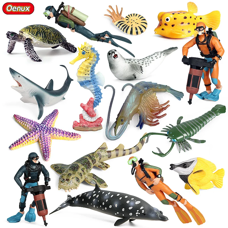 Фигурки Oenux Морская жизнь, животные, дайвер, Кит, Акула, креветка, карб, рыба, черепаха, морская модель, аквариум из ПВХ, обучающая детская игрушка