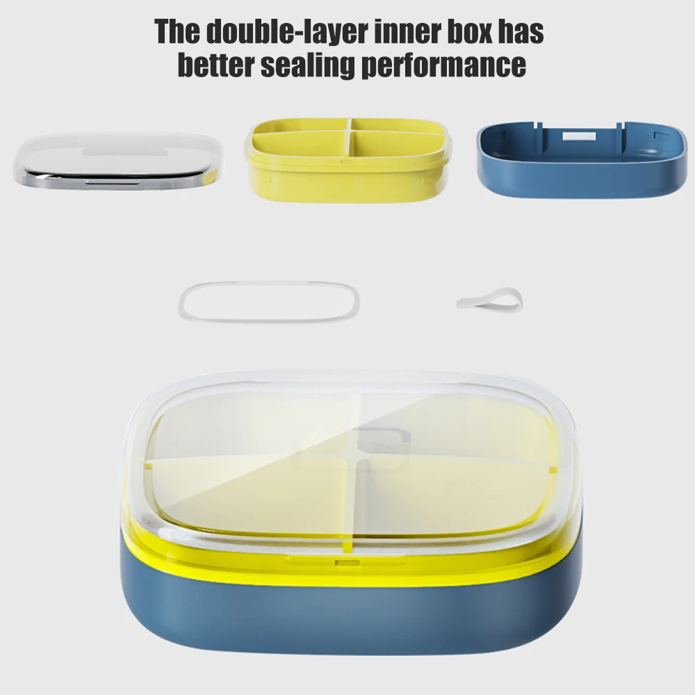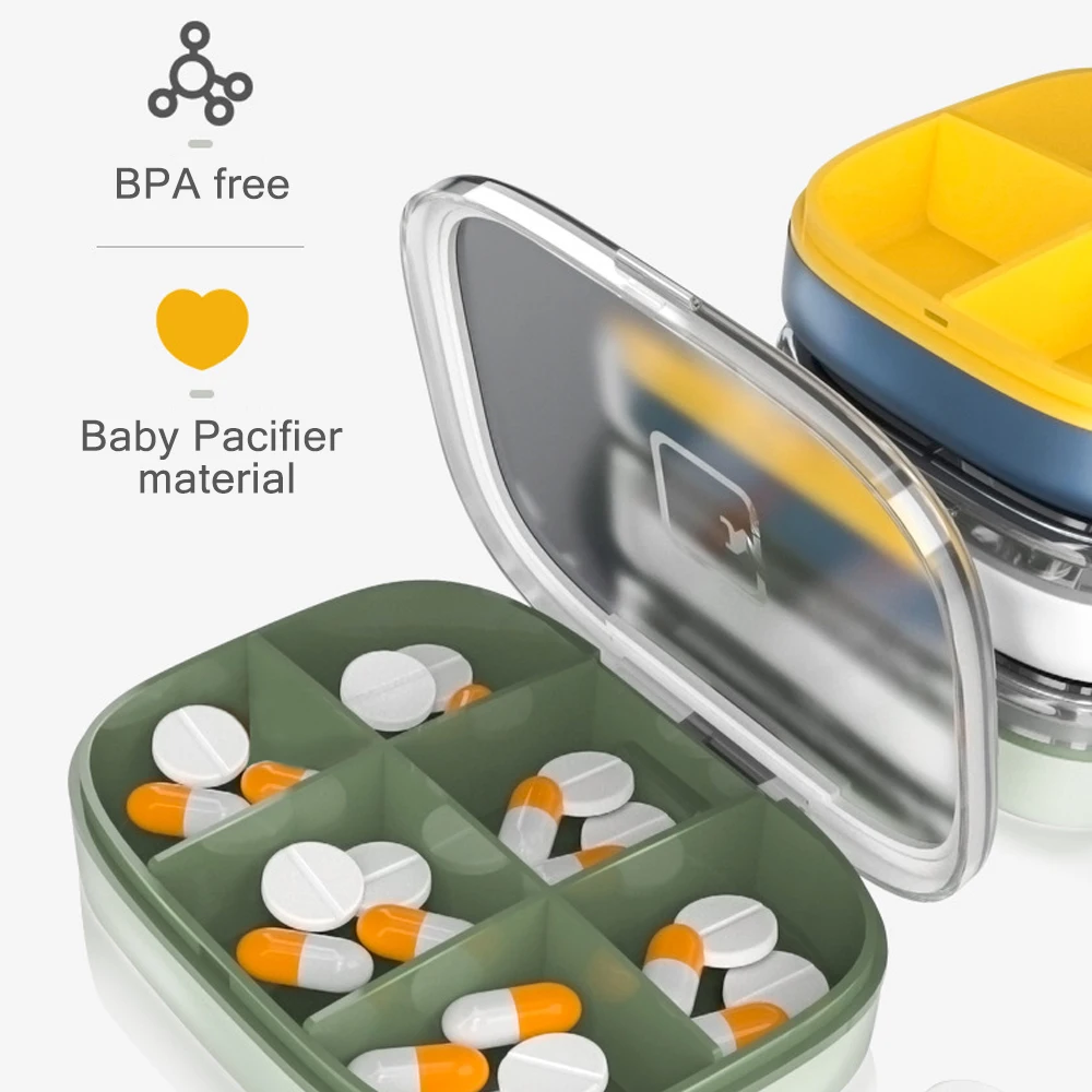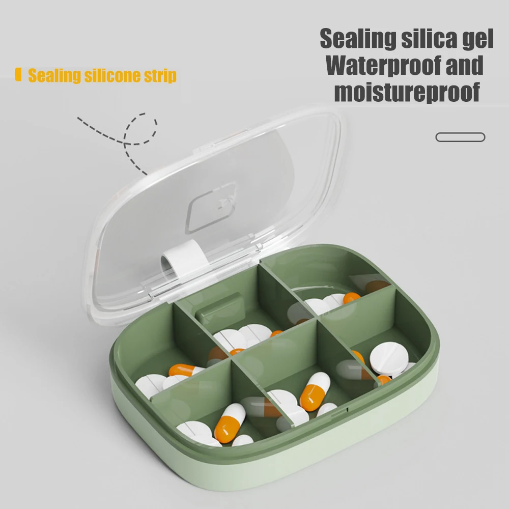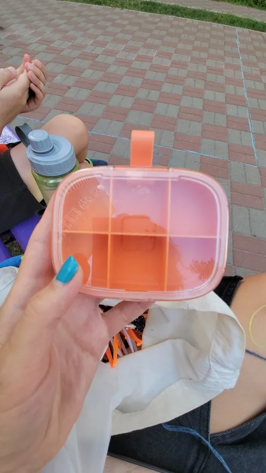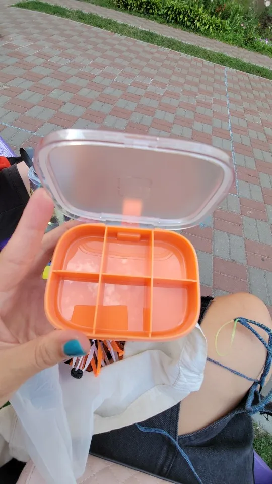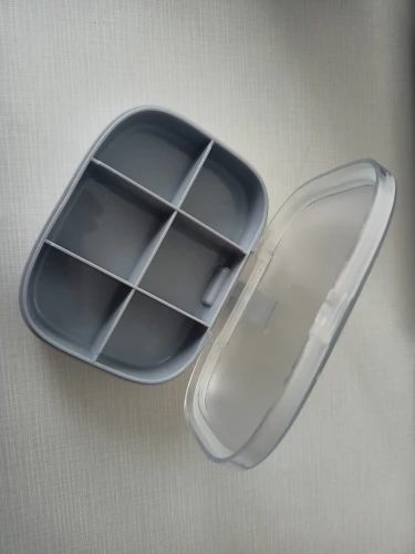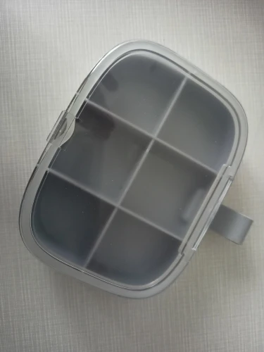 Крепкий, хорошо закрывается с резиновой прокладкой (силикон?). Каждый карман подходит для большого количества таблеток. Верх прозрачный, легко увидеть содержимое. Очень хорошая коробка, легко брать с собой, рекомендуется.