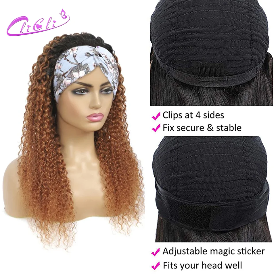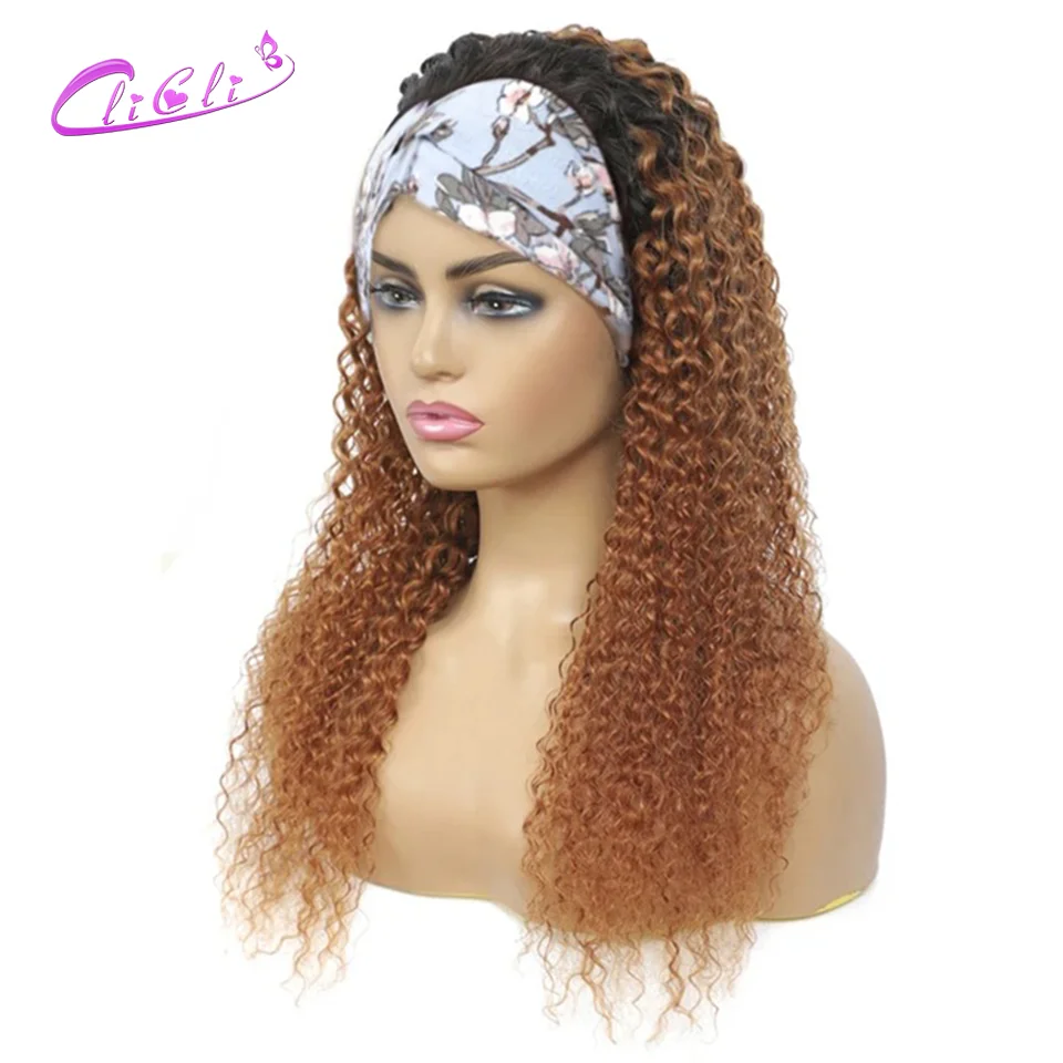 Искусственные человеческие волосы, кудрявые, кудрявые, головные ленты, парики, человеческие волосы с Омбре, монгольские, кудрявые, парик с головной повязкой s для черных женщин, кудрявые