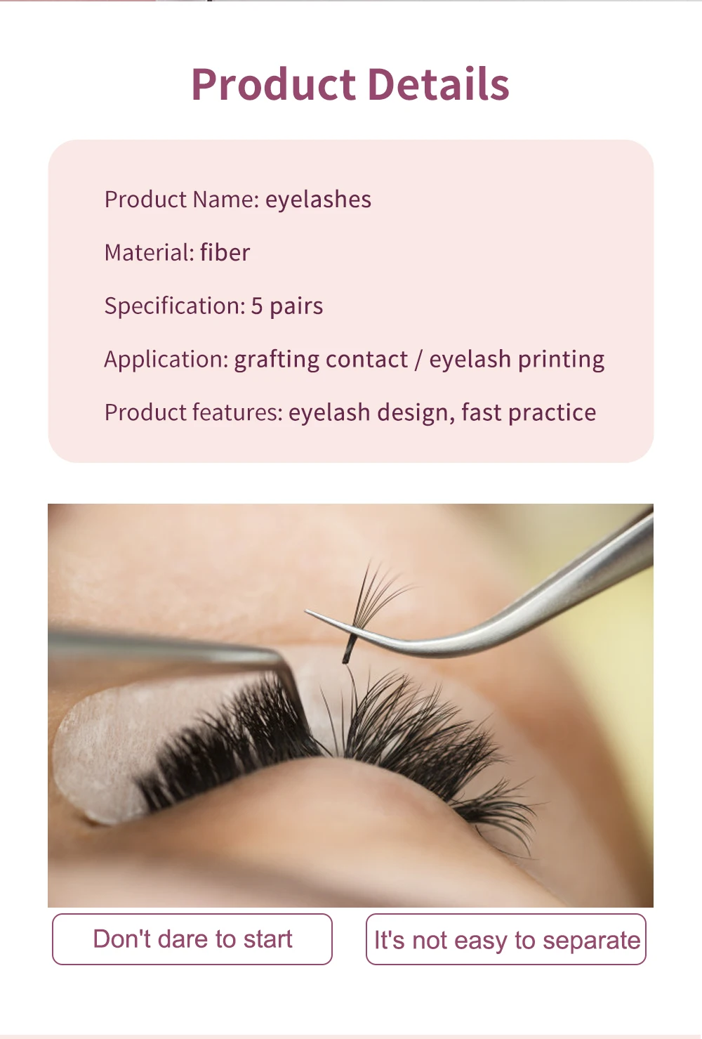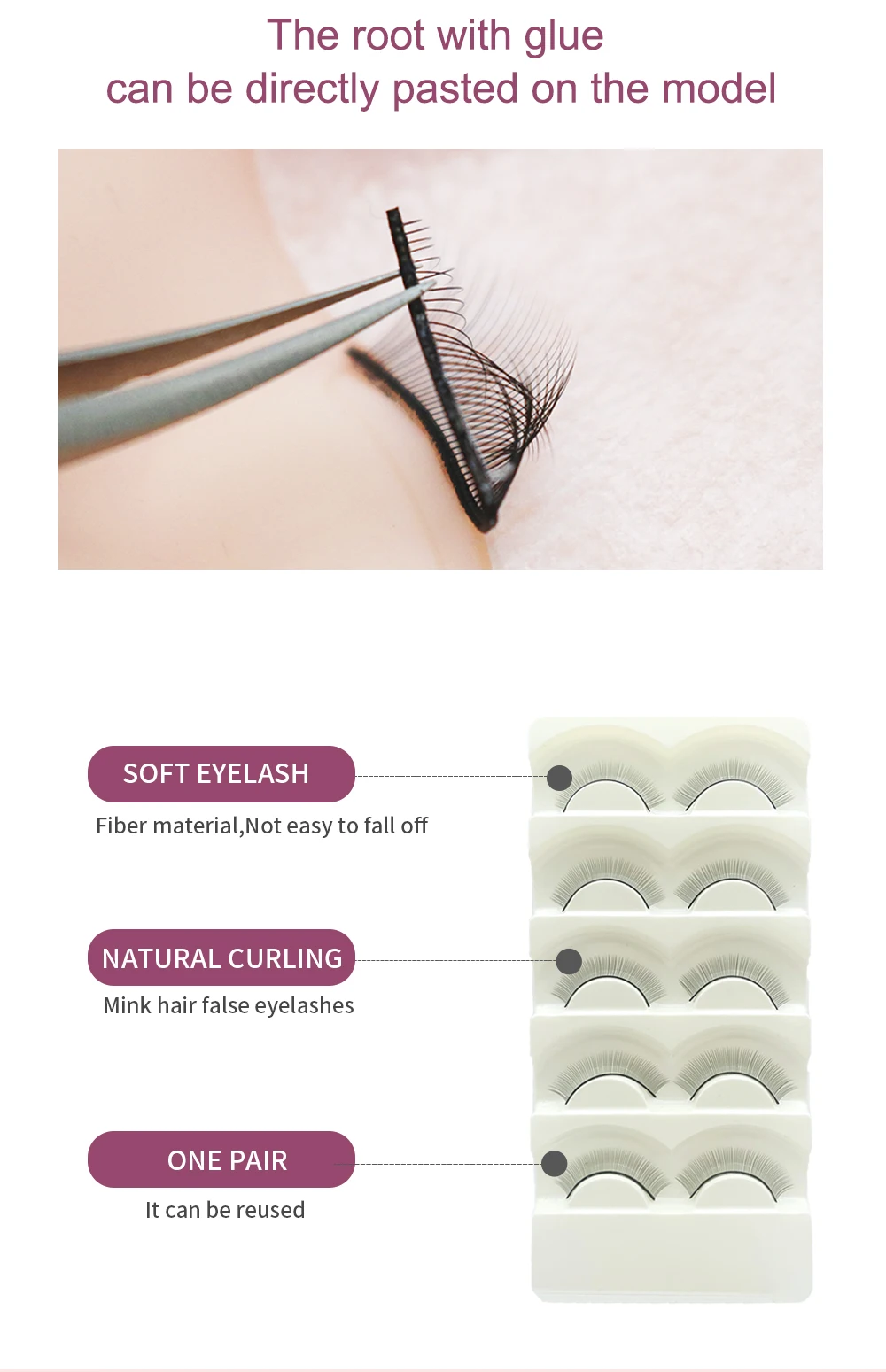 100% абсолютно новый, самоклеящийся, многоразовый, простой в использовании и удалении. Ручная работа из синтетического волокна, Раздельный и четкий вид.Может использоваться вместе с подушечками для глаз и головной моделью.
