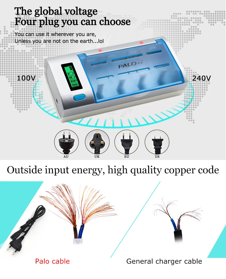 Устройство для быстрой зарядки аккумуляторов PALO, 8 слотов, ЖК-дисплей, 1,2 в