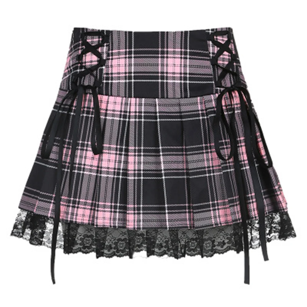 Плиссированная мини-юбка Uefezo, женские готические сексуальные юбки, эстетичная юбка, розовая клетчатая юбка на шнуровке, женские юбки в стиле панк