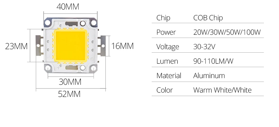 20W 30W 50W 100W chipwork in 30-36V, size 4.6*
