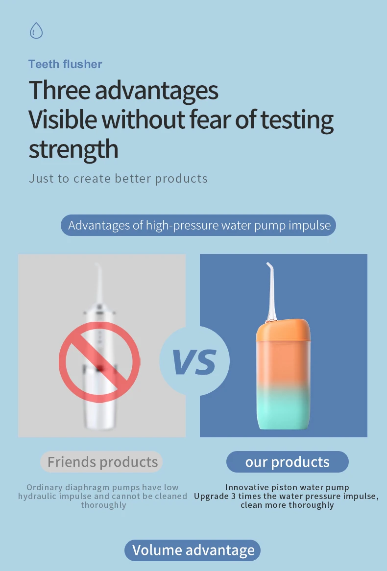 Пришло быстро, упаковано хорошо, работает. НО! стационарный ирригатор эта штука не заменит. 1. На полноценную чистку нужно 2-3 раза набрать резервуар. 2. Скорость подачи струи всего одна и "средняя". струя воды бъёт импульсами по 3 с интервалом в секунду. 3. В инструкции предлагается хранить насадку внутри самого устройства. На практике это означает весёлый квест с доставанием её оттуда. Итого: как портатив, чтобы брать с собой на работу или в поездку подойдёт, но для дома и семьи лучше добавить денег и купить стационарный ирригатор.