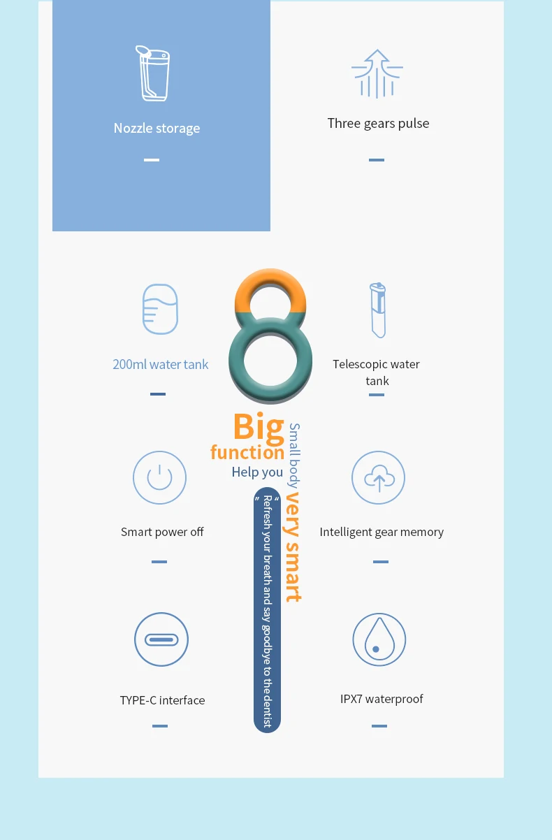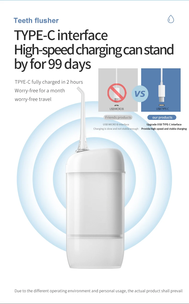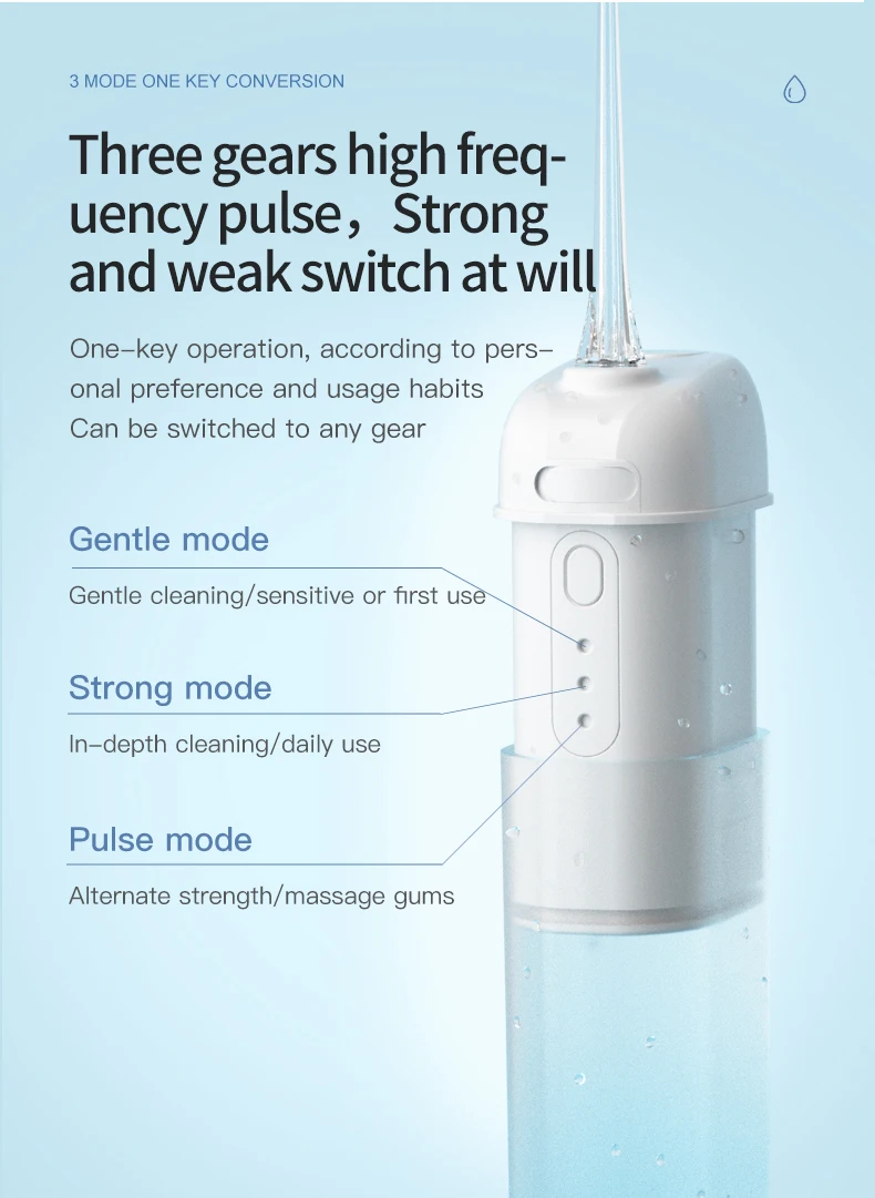 Ирригатор для полости рта портативный, 3 режима, водонепроницаемый