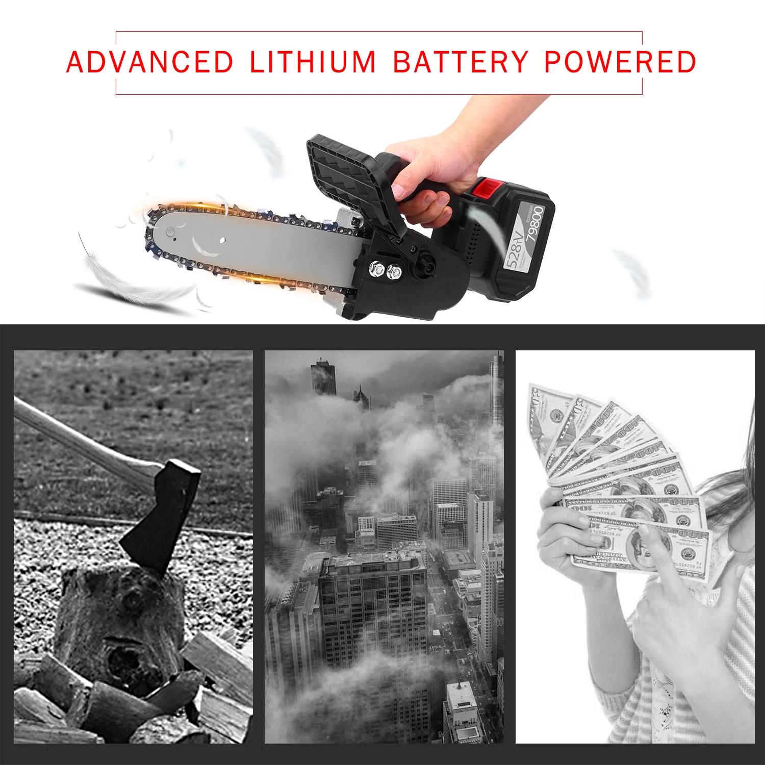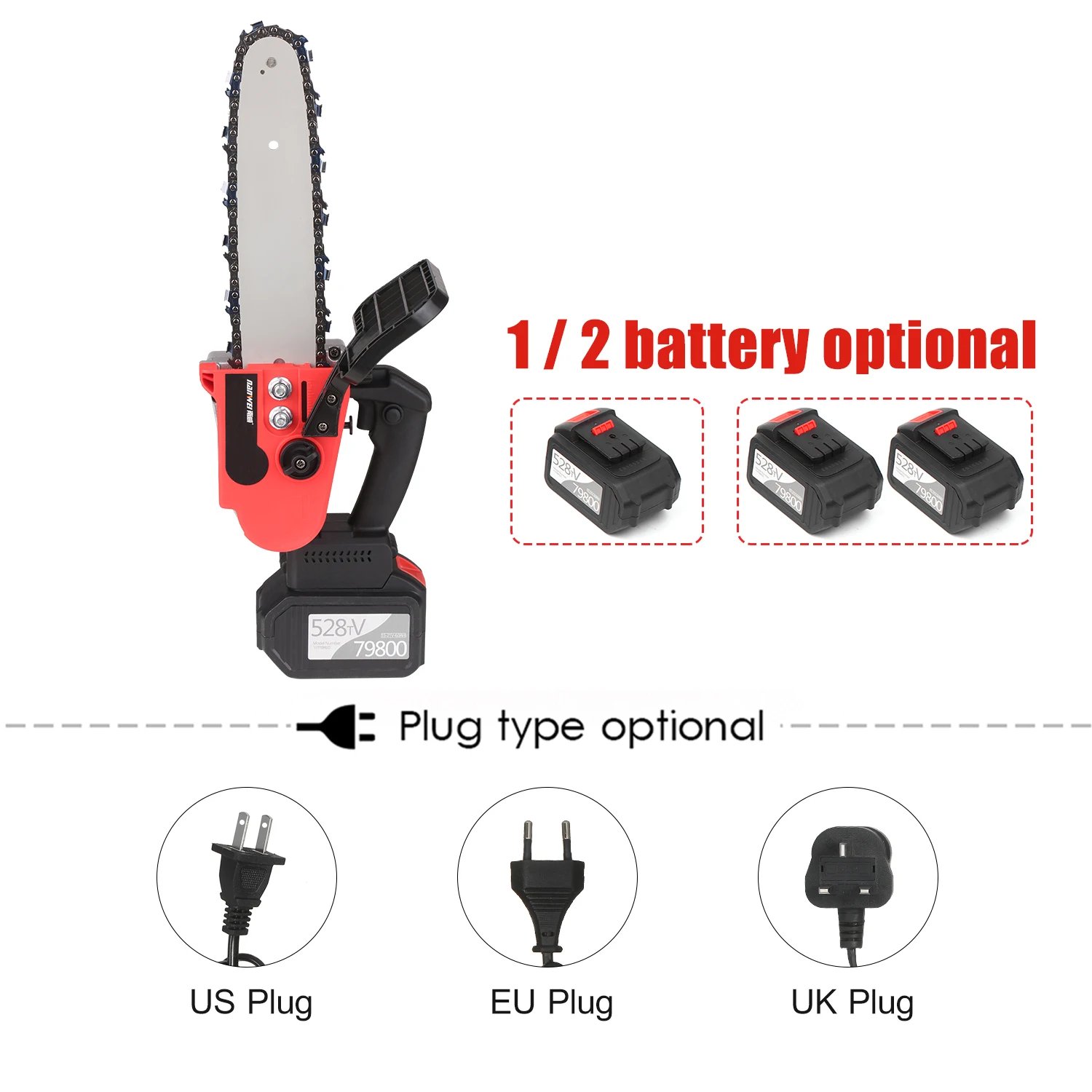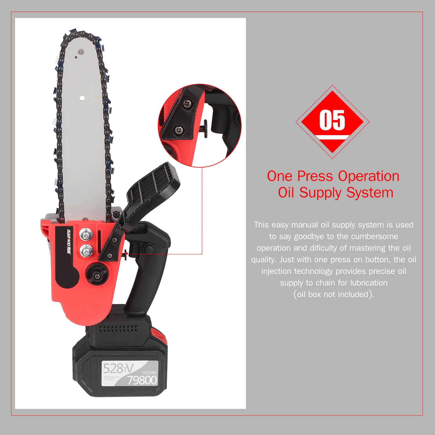 Особенности:Профессиональная бесщеточная бензопила-Мощный бесщеточный двигатель обеспечивает стабильную эффективность работы 10-дюймового стержня и цепи, позволяя с легкостью резать бревна и ветки диаметром от 0 до 8,66 дюймов. Идеально подходит для резки работ в саду или на ферме.Автоматическое Натяжение-автоматическое натяжение цепи обеспечивает более эффективный Быстрый разрез. Вы всегда будете иметь правильное напряжение и крутящий момент для каждой работы, автоматически.Смазка Цепи-система быстрого смазывания цепи от масла к стержню и цепи при необходимости для обеспечения долговечности и оптимального использования не только делает более плавный, эффективный срез, он продлевает срок службы инструмента. И с индикатором уровня масла для четкого обзора.Высокая скорость цепи-19,7 футов/с. Прорвется через любую подходящую величину бревна или ветки. Эта скорость в сочетании с нашими системами автоматического натяжения и автоматического масла, а также общая легкая конструкция обеспечивают плавную пилу.Мощный источник питания-528TV 21 в 6.0Ah литиевый аккумулятор время использования может до 270 мин при скорости холостого хода, а 3 часа быстрой зарядки обеспечивают длительное время работы вне помещения. Пила без газа и шнура, много меньше Муса и суеты.Спецификация:Название товара: литиевая цепная пилаЦвет: красныйВилка: ЕС/США/Великобритания (опционально)Номинальное напряжение: 21 вЕмкость аккумулятора:6,0 АчВремя зарядки: около 3 часовДлина направляющей пластины: 310 ммМаксимальный диаметр реза: 230 ммСкорость цепи: 6 м/сРазмер товара: 44*16,5*14 см/17,32*6,49 * 5.51inВес изделия: 2711 г/95,62 унцииКомплектация:1 * Беспроводная цепная пила1 / 2*6,0 Ач Аккумулятор1 * быстрое зарядное устройство1 * Руководство пользователя