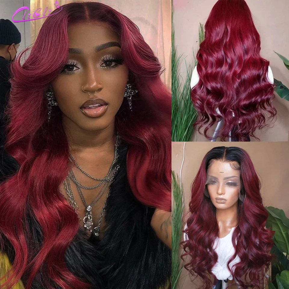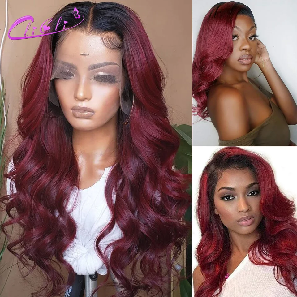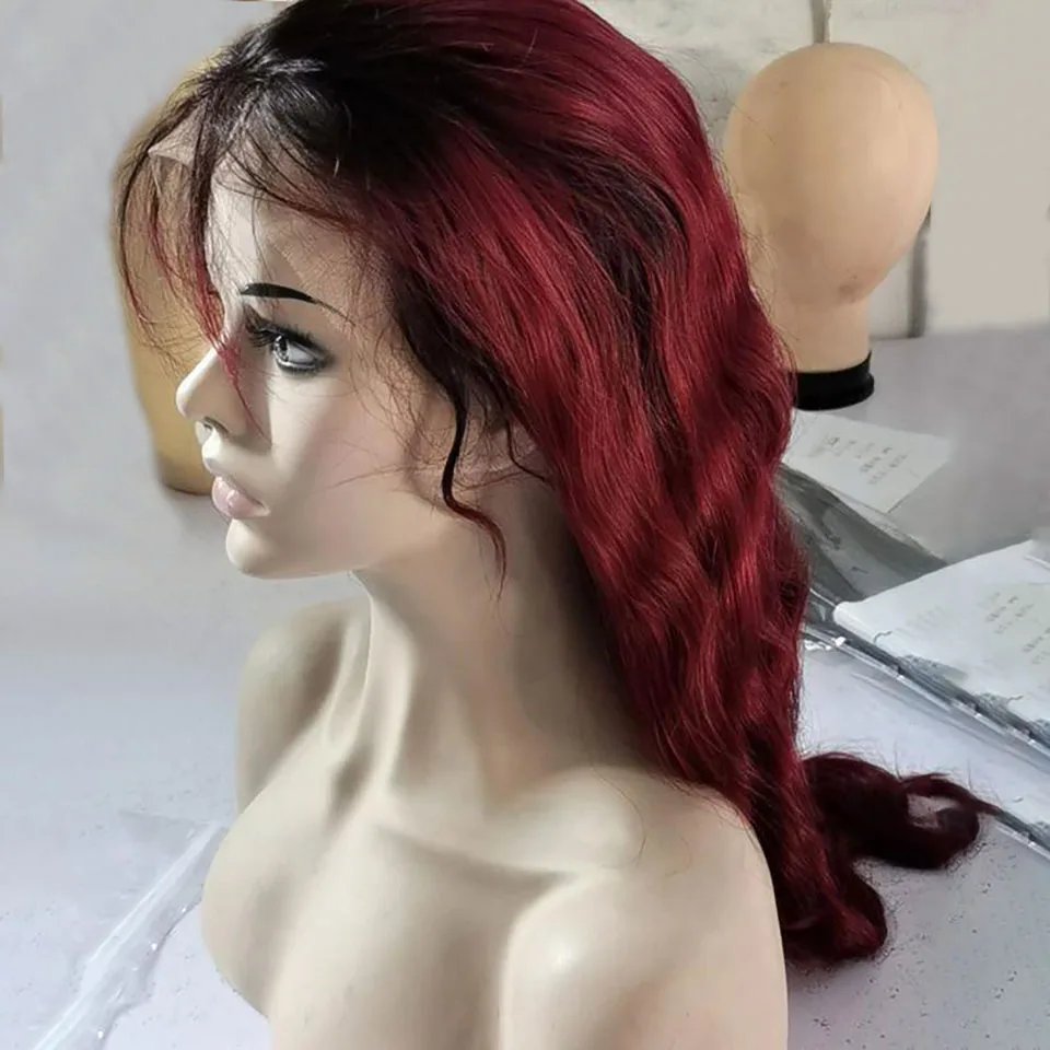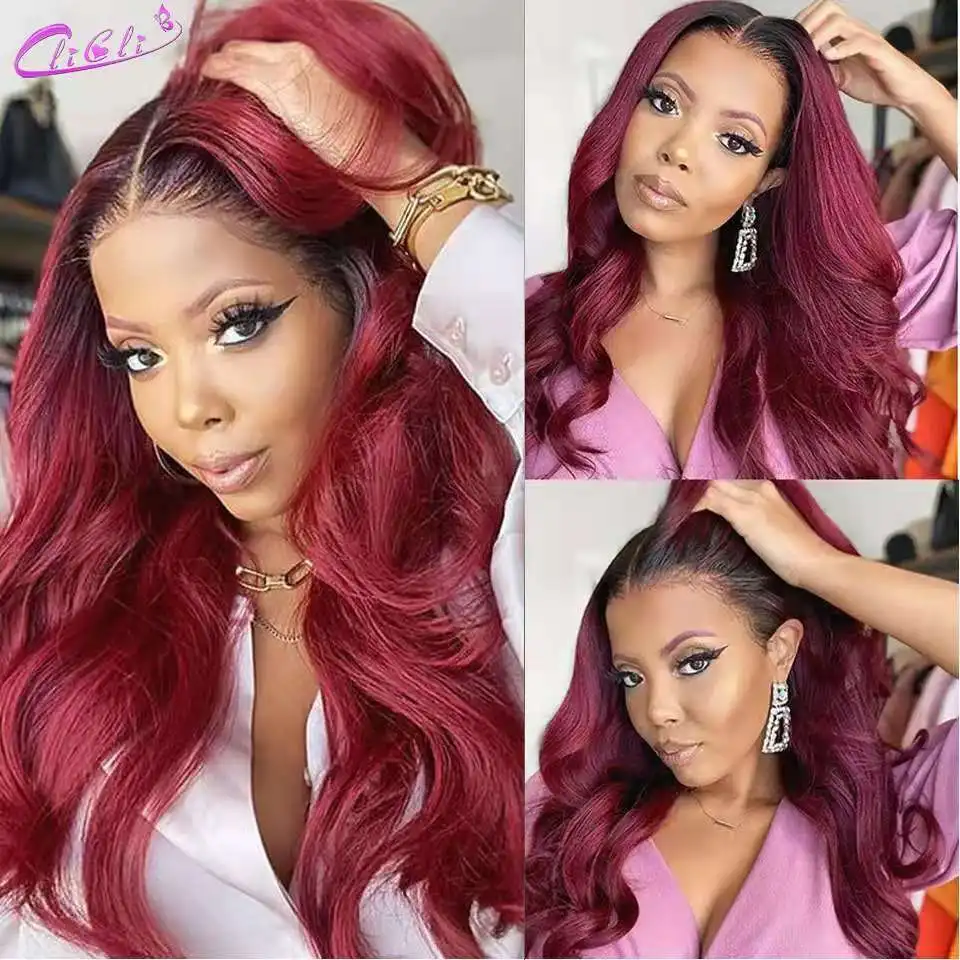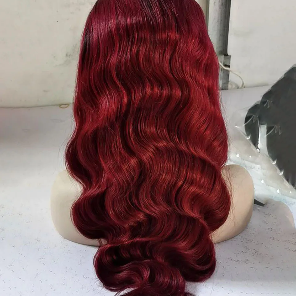 Парик 1B 99j со шнуровкой спереди, волнистые волосы 4x4, парик с застежкой Омбре, светлые человеческие волосы, предварительно выщипанные парики 13x4 1B, бордовые, красные, на сетке спереди