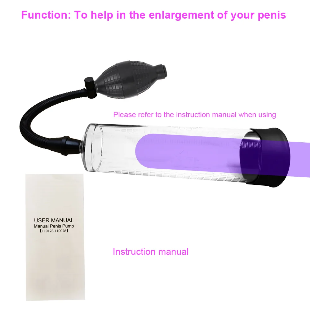 Характеристика:Придайте вашей уверенности в себе, самооценке и улучшите ваши отношения.Насос использует воздух для увеличения размера вашего пениса.Цилиндр крепится к мягкой резиновой втулке.Просто поместите этот рукав поверх вашего пениса, а затем равномерно прокачивайте вручную.Когда лампа перекачивается, воздух вытягивается из цилиндра, создавая вакуум.Этот вакуум помогает втягивать больше крови в пенис, укрепляя ткань и вызывая эрекцию.Вакуум расширяет ткань и приводит к увеличению размера пениса.Простое применение позволяет использовать в вашем собственном доме или в любой частной зоне.Все-естественно: Без лекарств, инъекций или операций.Быстро и безболезненно увеличивайте свою мужественность.Прозрачная камера с измерениями, чтобы вы могли видеть результаты.Легкая Кнопка продувки клапана.