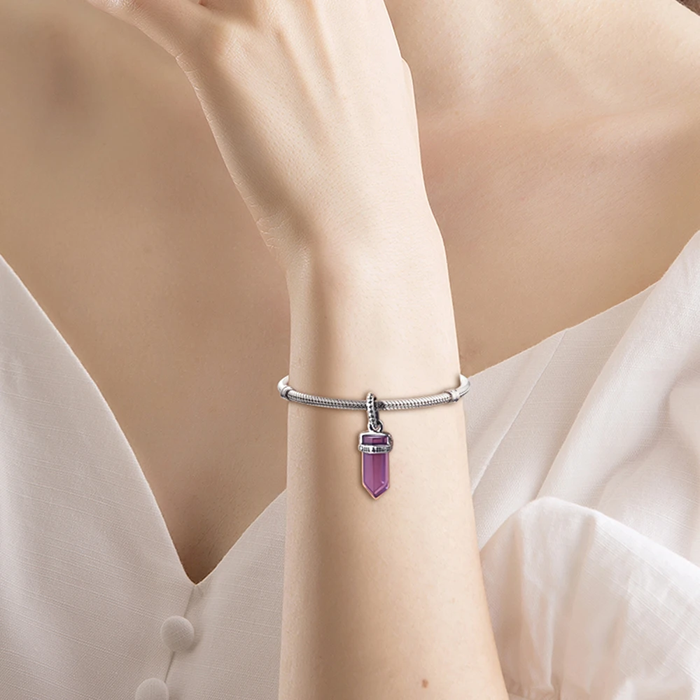 Фиолетовый сверкающие подарок ко Дню Святого Валентина Семья ювелирные изделия Компоненты 100% реальные S925 стерлингового серебра Подвески для изготовления ювелирных изделий