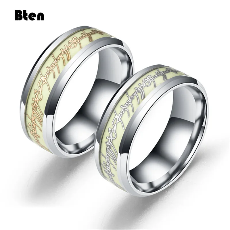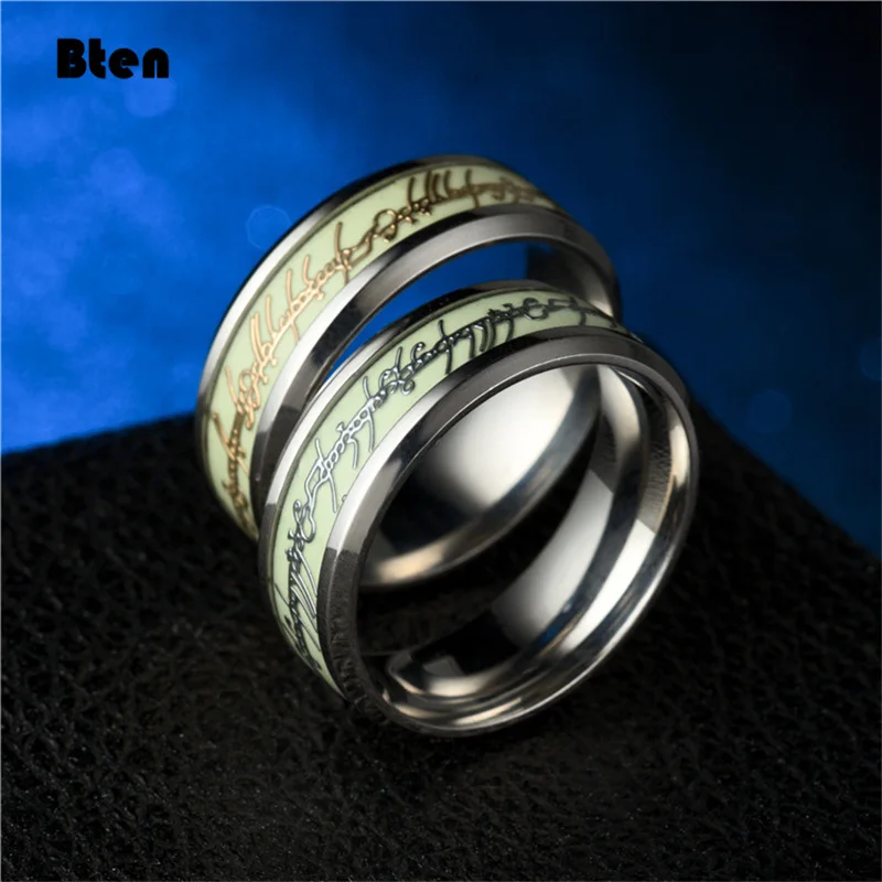 Светящееся кольцо Bten, черное модное мужское минималистичное кольцо из нержавеющей стали, светящееся кольцо для пары, Черный Властелин