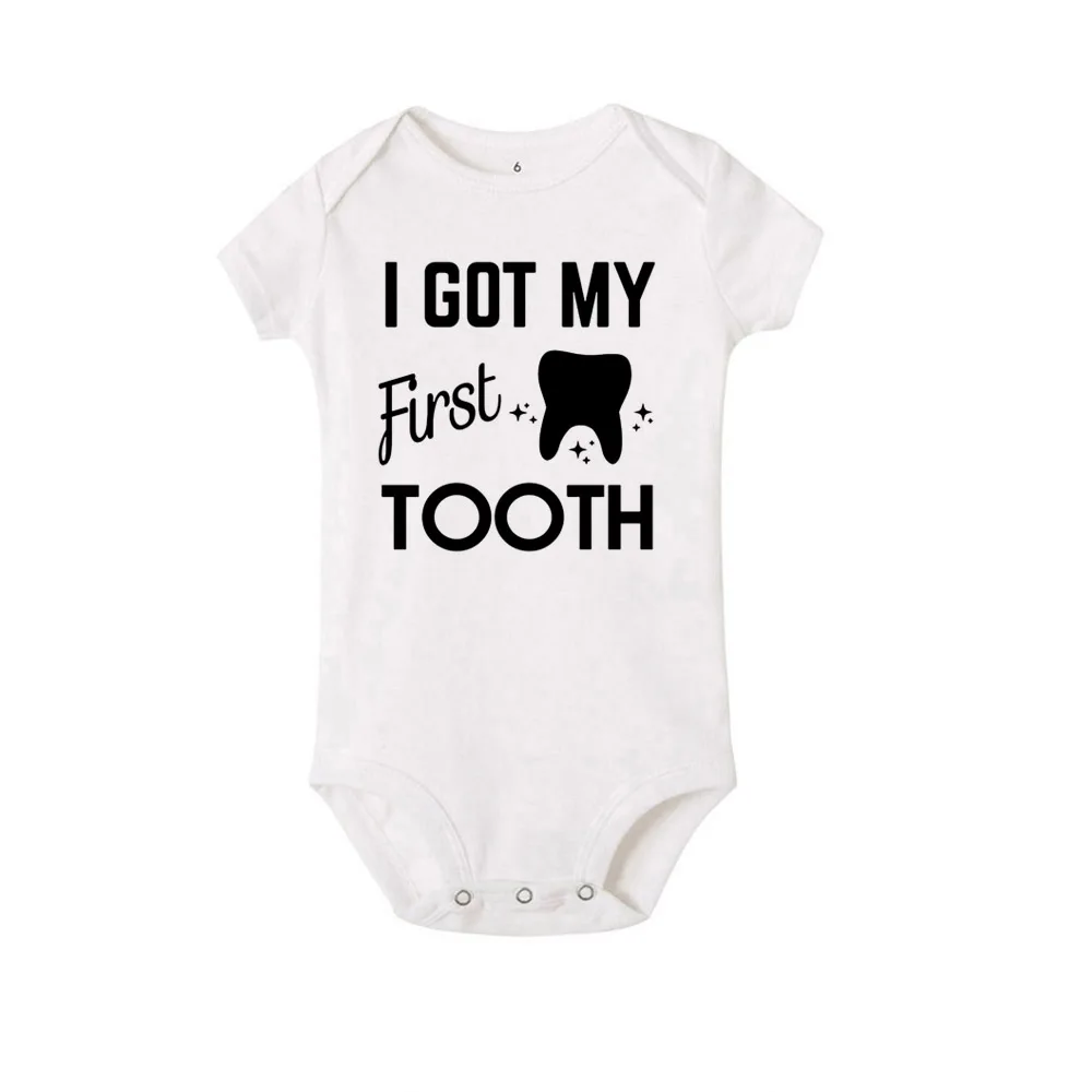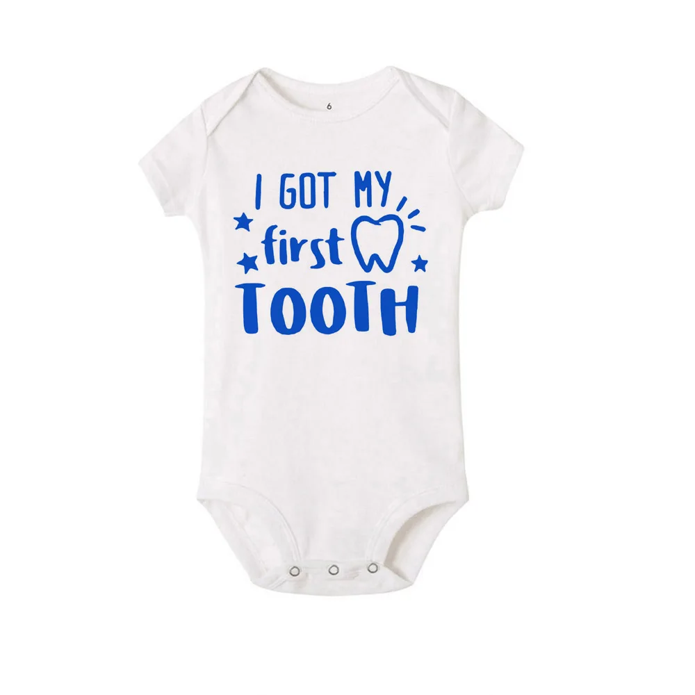 Детская одежда, Одежда для новорожденных девочек, летние комбинезоны для малышей, детские вещи, костюм для мальчиков, боди с принтом «Первый зуб» для новорожденных