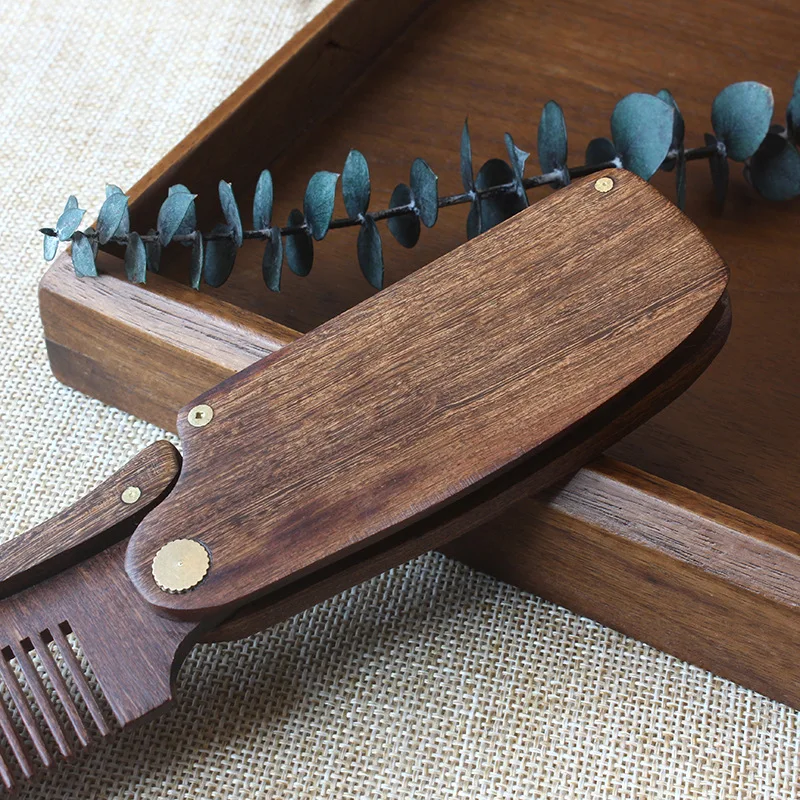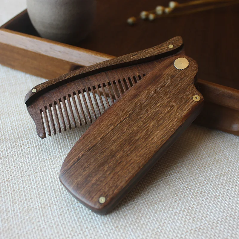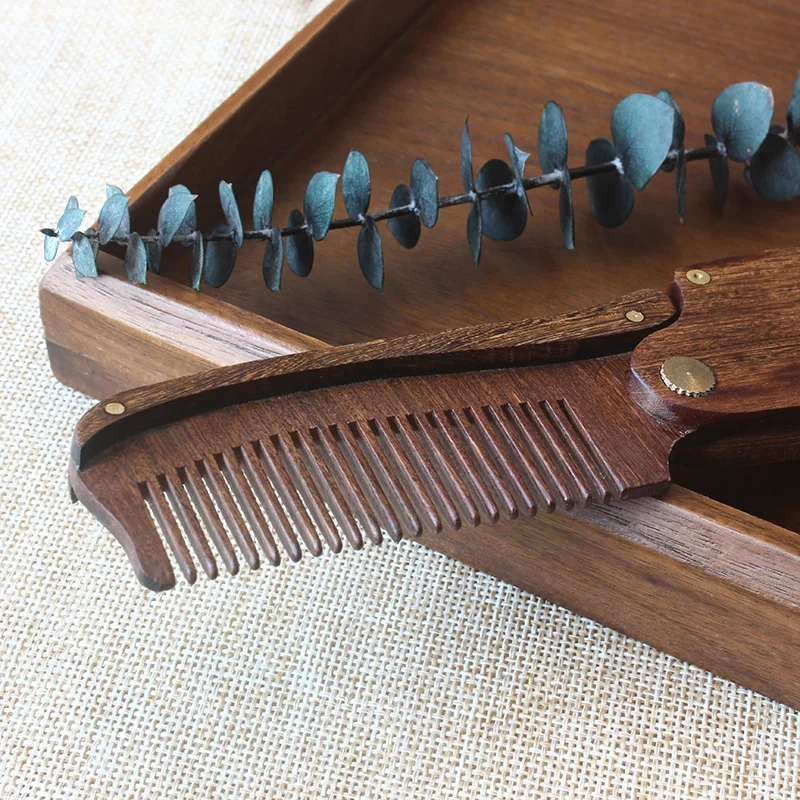 Щетка из черного сандалового дерева с тонкими зубьями, Складная Расческа для бороды, все типы волос