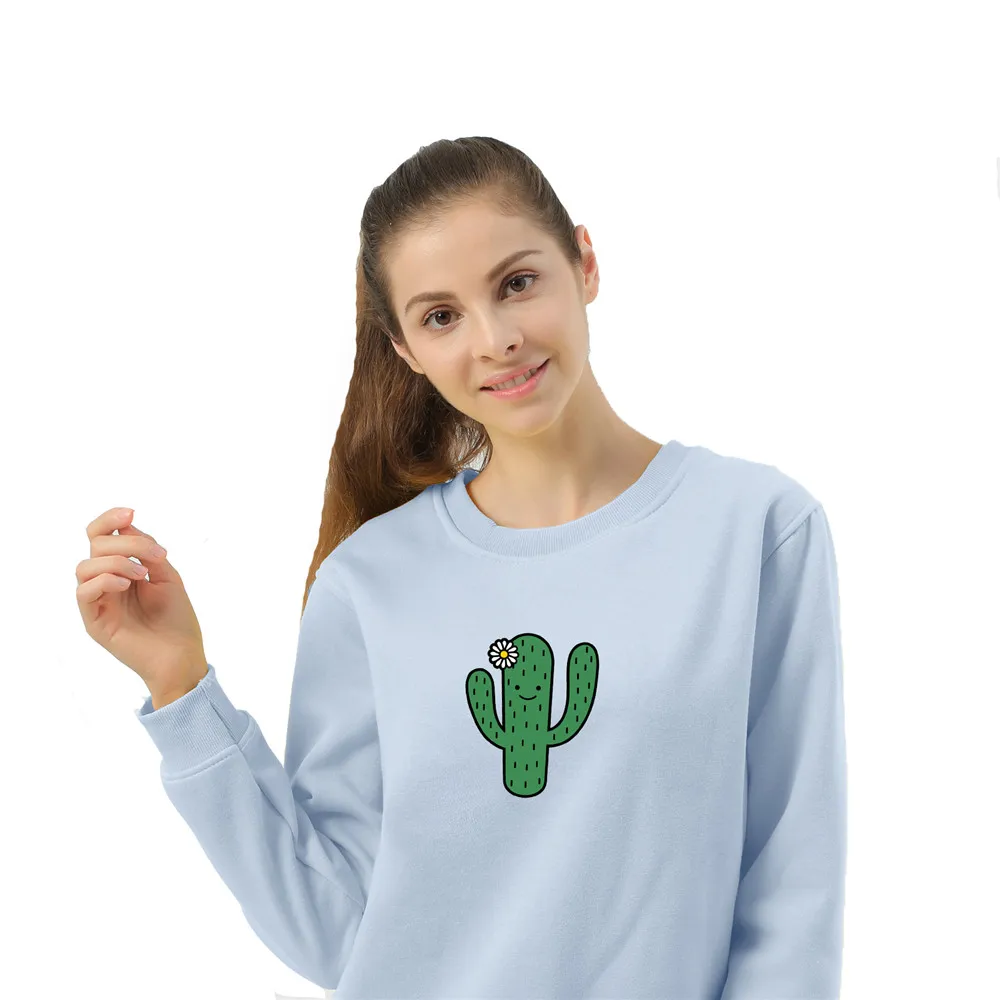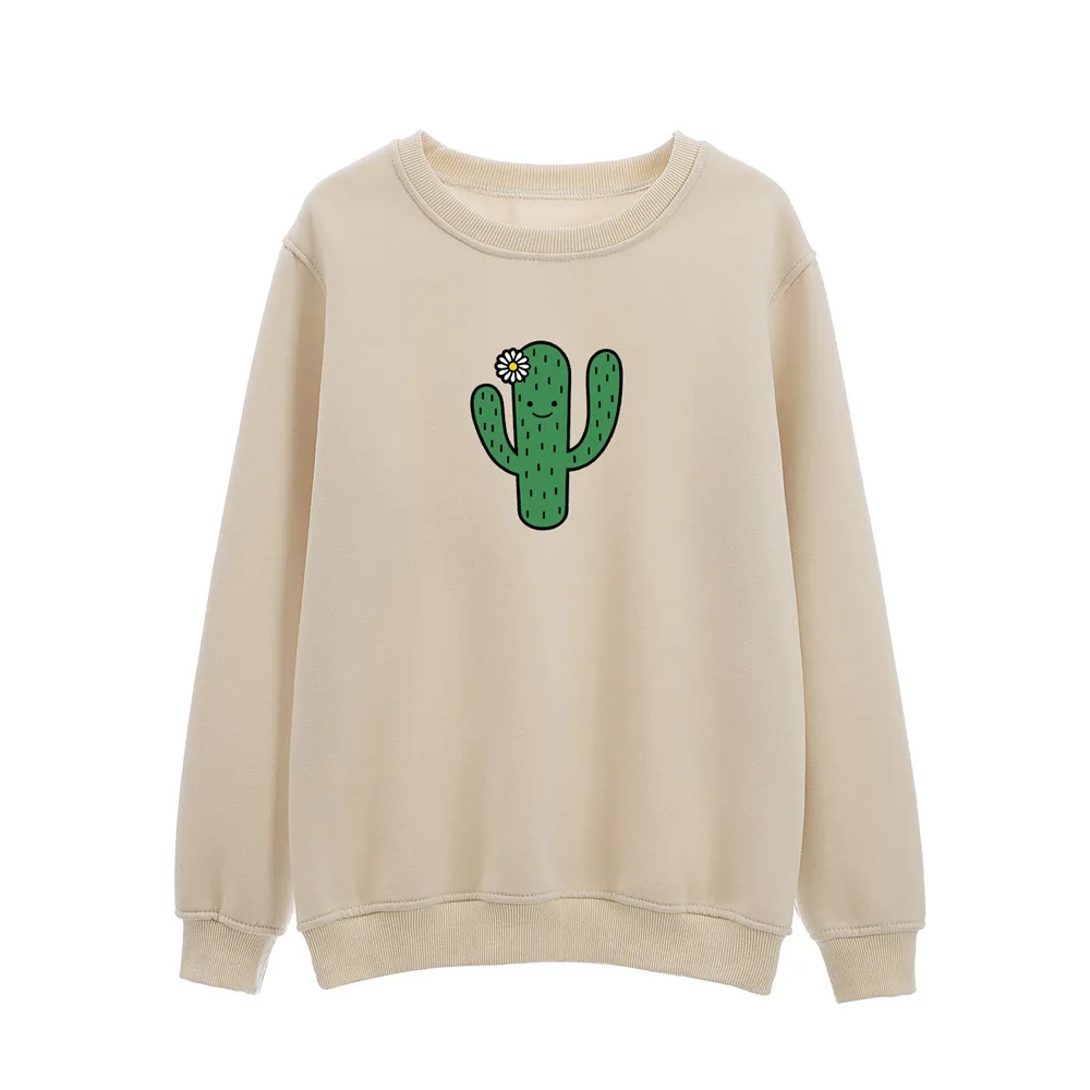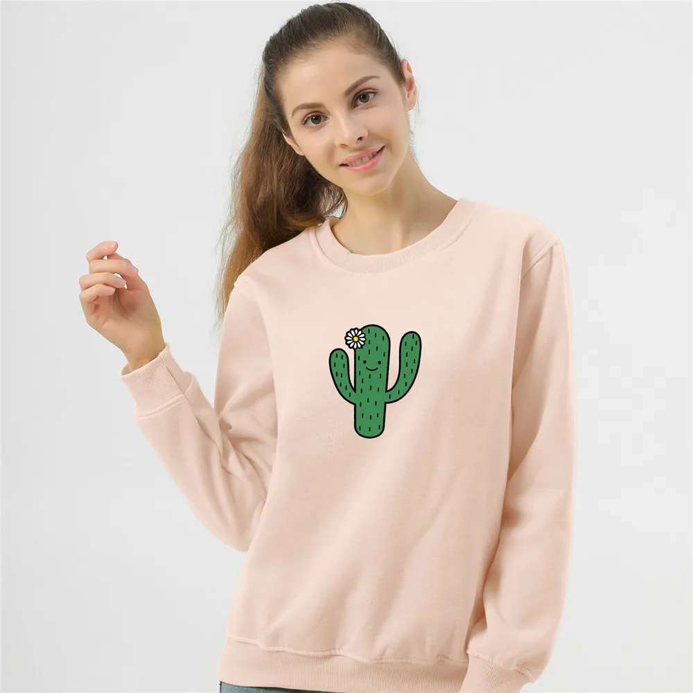 Худи с изображением кактуса, свитшот, Женский пуловер, свитшот для девочек с длинным рукавом, красивая эстетичная одежда с принтом
